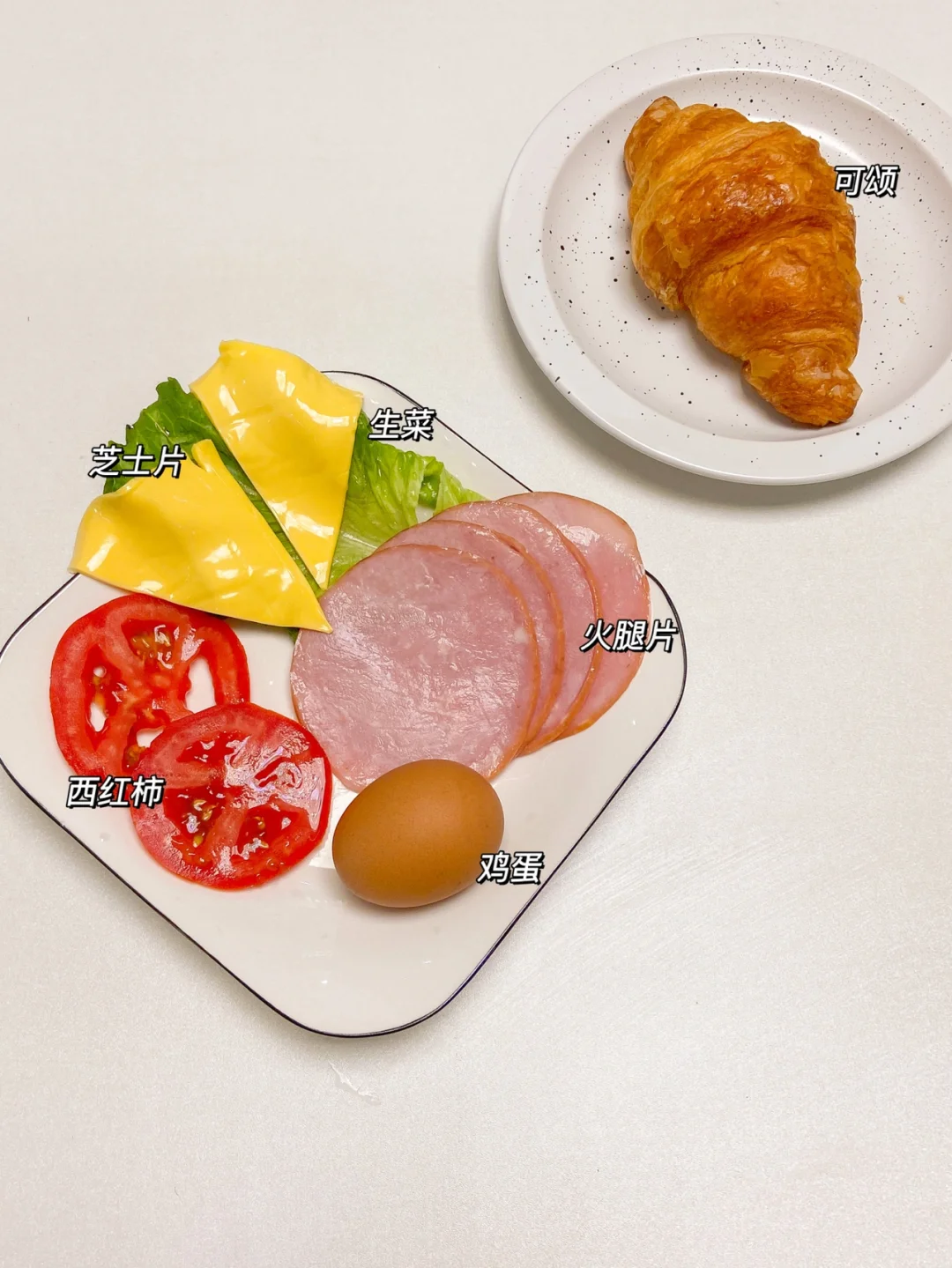鸡蛋1颗 可颂 美式香肠 西红柿 生菜 芝士片