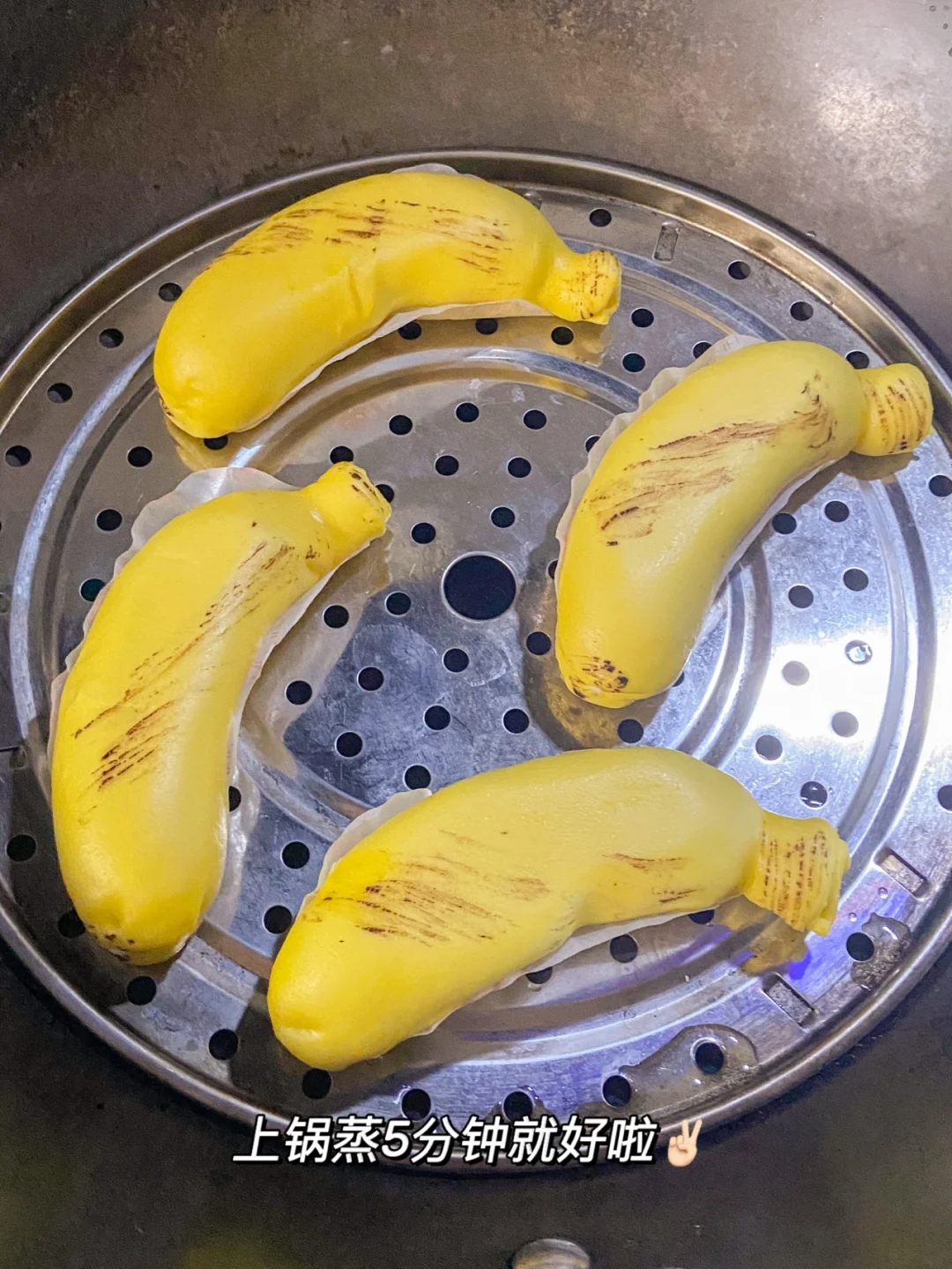可以剥皮的香蕉包 可爱又有趣 连大人都被吸引住了 别说我女儿了 可别太爱吃 简单又快手的速食小面包🍌 做法✨✨✨✨✨ 1️⃣上锅蒸5分钟左右出炉 一步完成一道超可爱的早餐 胖乎乎的香蕉造型 很逼真 三层口感十分丰富 香蕉果泥夹心 口感松软绵密 特别的香✌🏻 还可以像吃水果香蕉一样剥皮 真的太有意思了🍌颜值高又好吃 孩子去上学也可以带出门吃 还可以当下午茶 五分钟轻轻松松搞定👌🏻