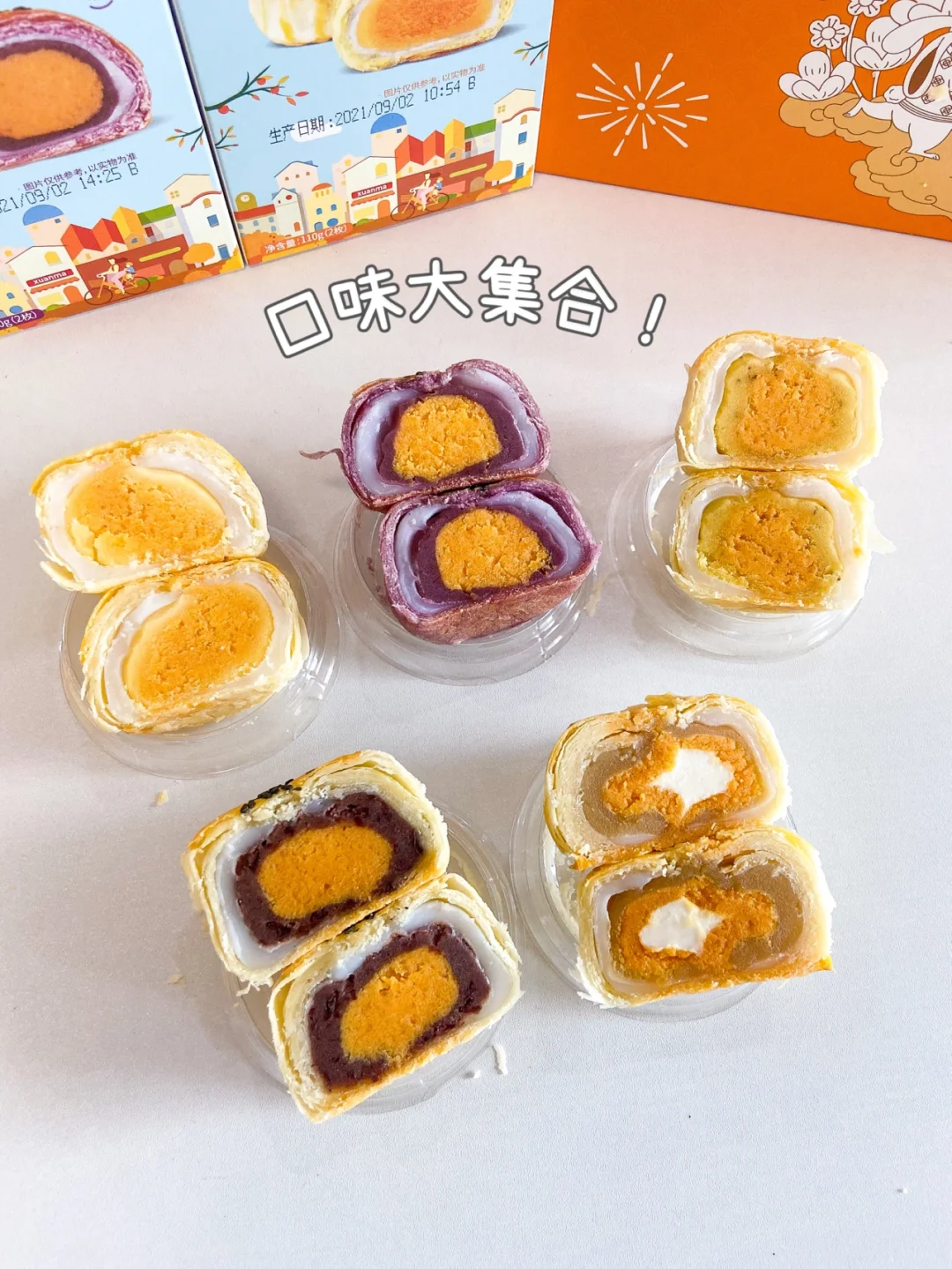 一直都很馋轩妈家的蛋黄酥 赶在中秋前买来送父母吃 父母一个劲的夸好吃 里面还有雪媚娘夹心 外面还真买不到这种!😋 中秋礼盒装共有5个口味18枚✨ 红豆原味、白莲蓉味、绿豆冰沙味、桂花味和紫薯味 每个口味都有自己的特色 酥皮用的安佳黄油 里面的雪媚娘还可以拉丝 各个惊艳 买一盒体验多种口味!🥳 礼盒包装中国风 有诗意 每个单独包装上都有关于月亮的诗句 中秋节不爱吃月饼的可以入一盒 不管送朋友还是亲戚都很合适 👍🏻
