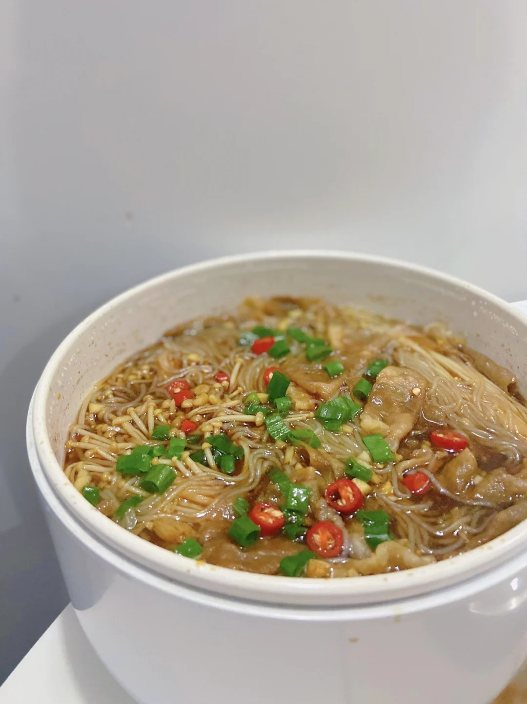 肥牛一盒 金针菇 粉丝 小米椒 葱