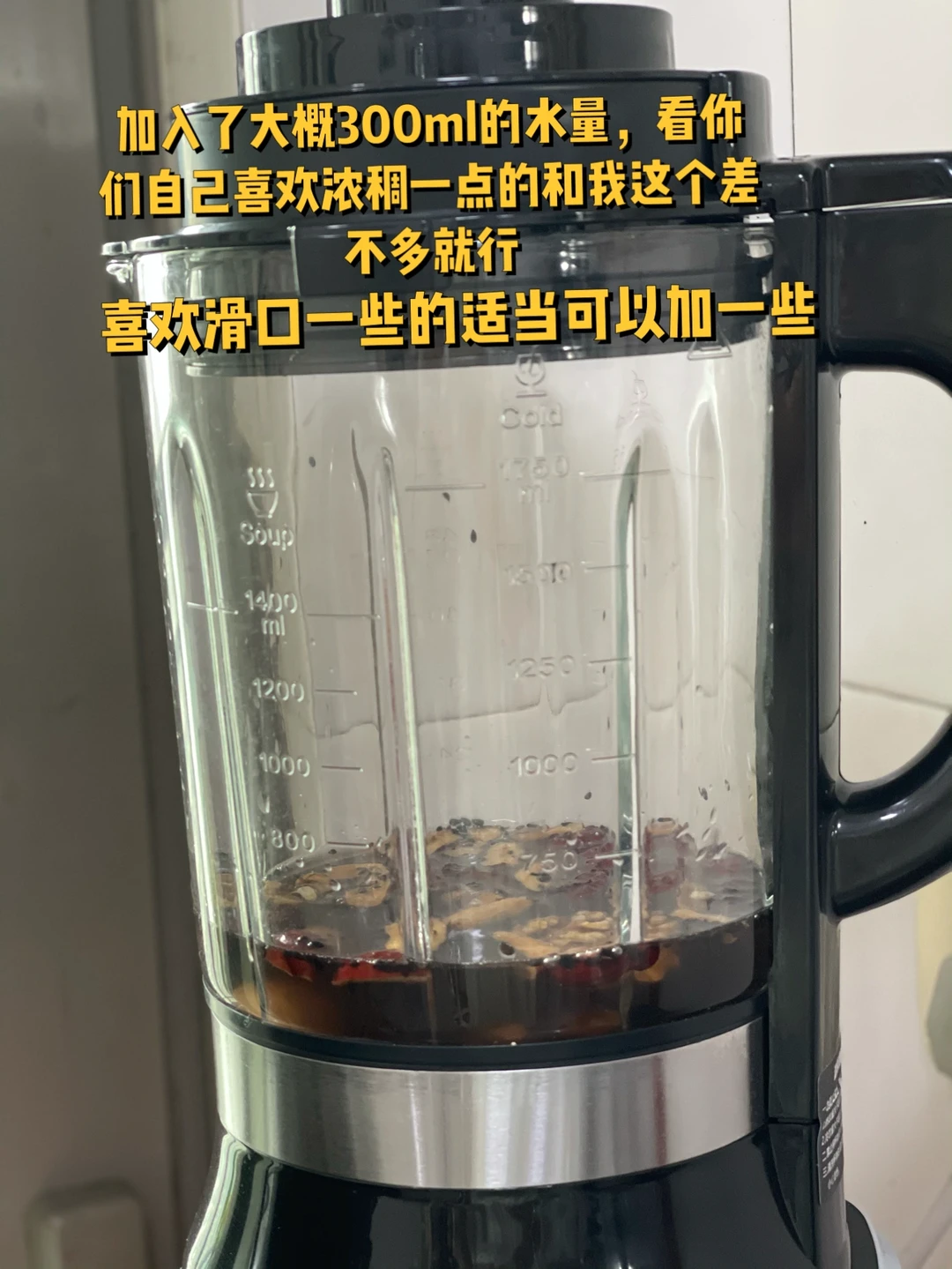 2. 加入了大概300ml的水量,看你们自己喜欢浓稠一点的和我这个差不多就行,喜欢滑口一些的适当可以加一些