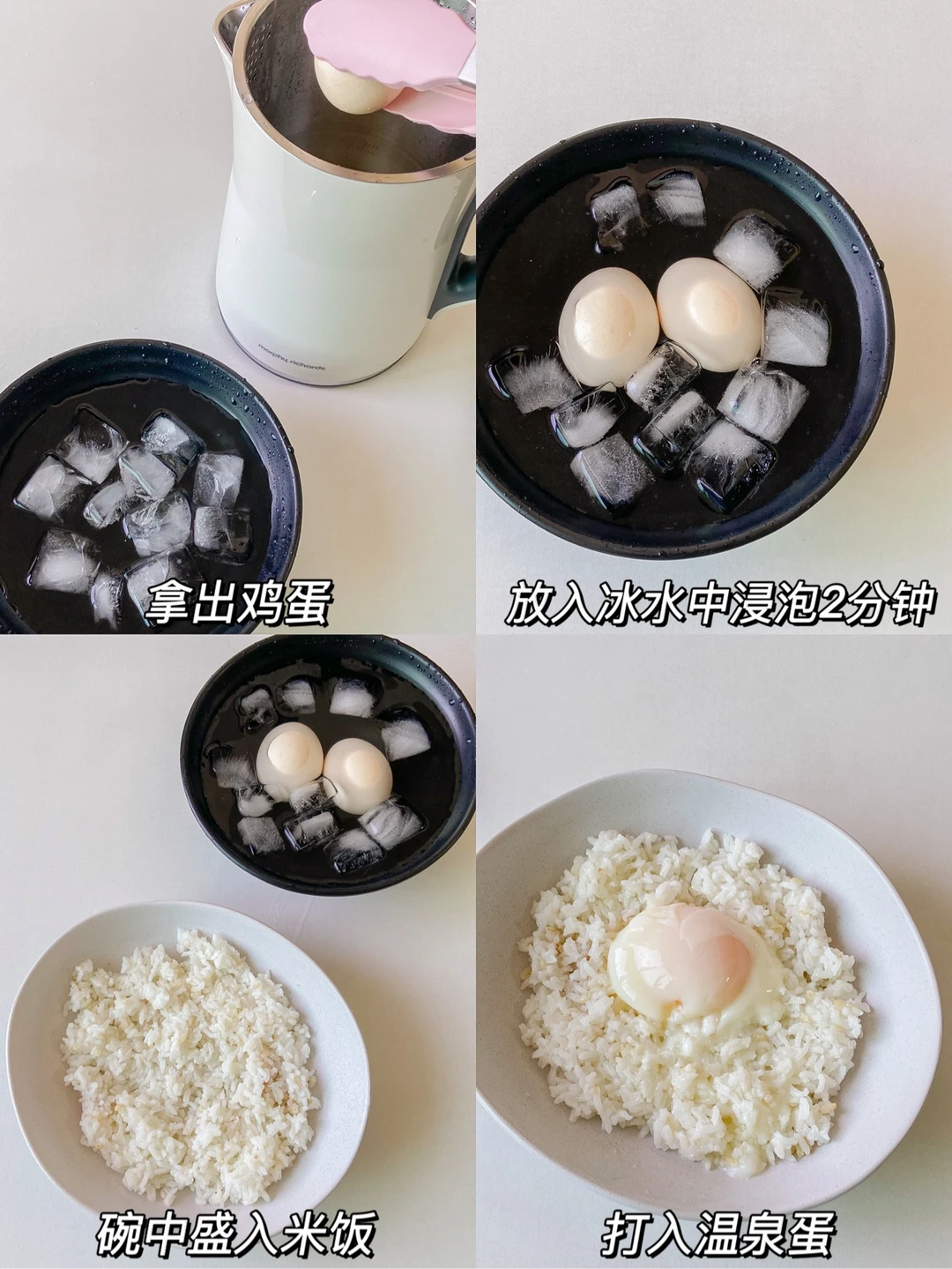 2️⃣拿出鸡蛋放入冰水中浸泡2分钟