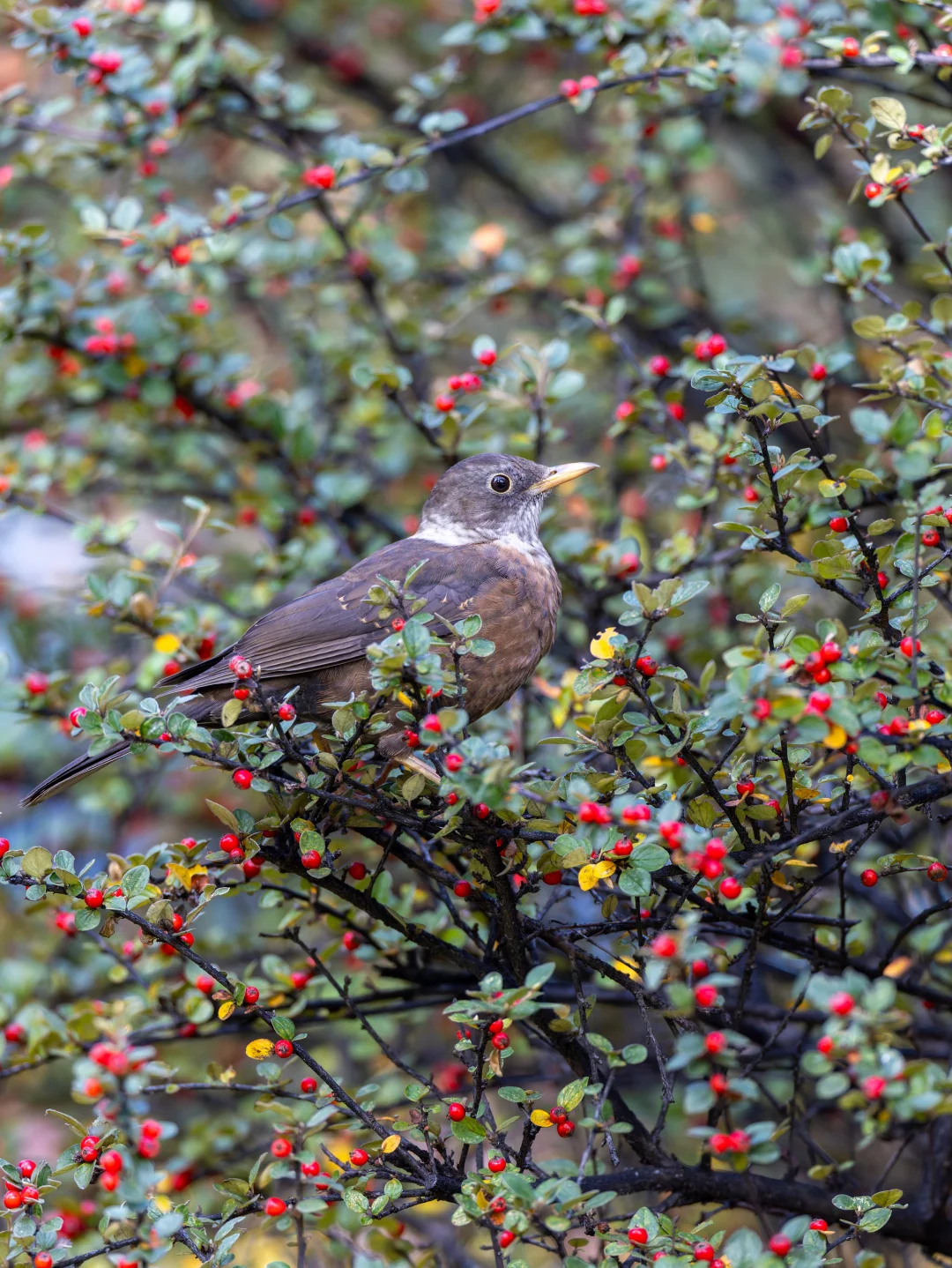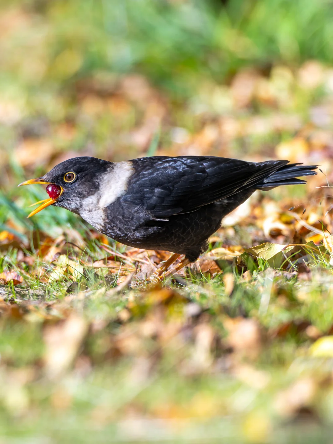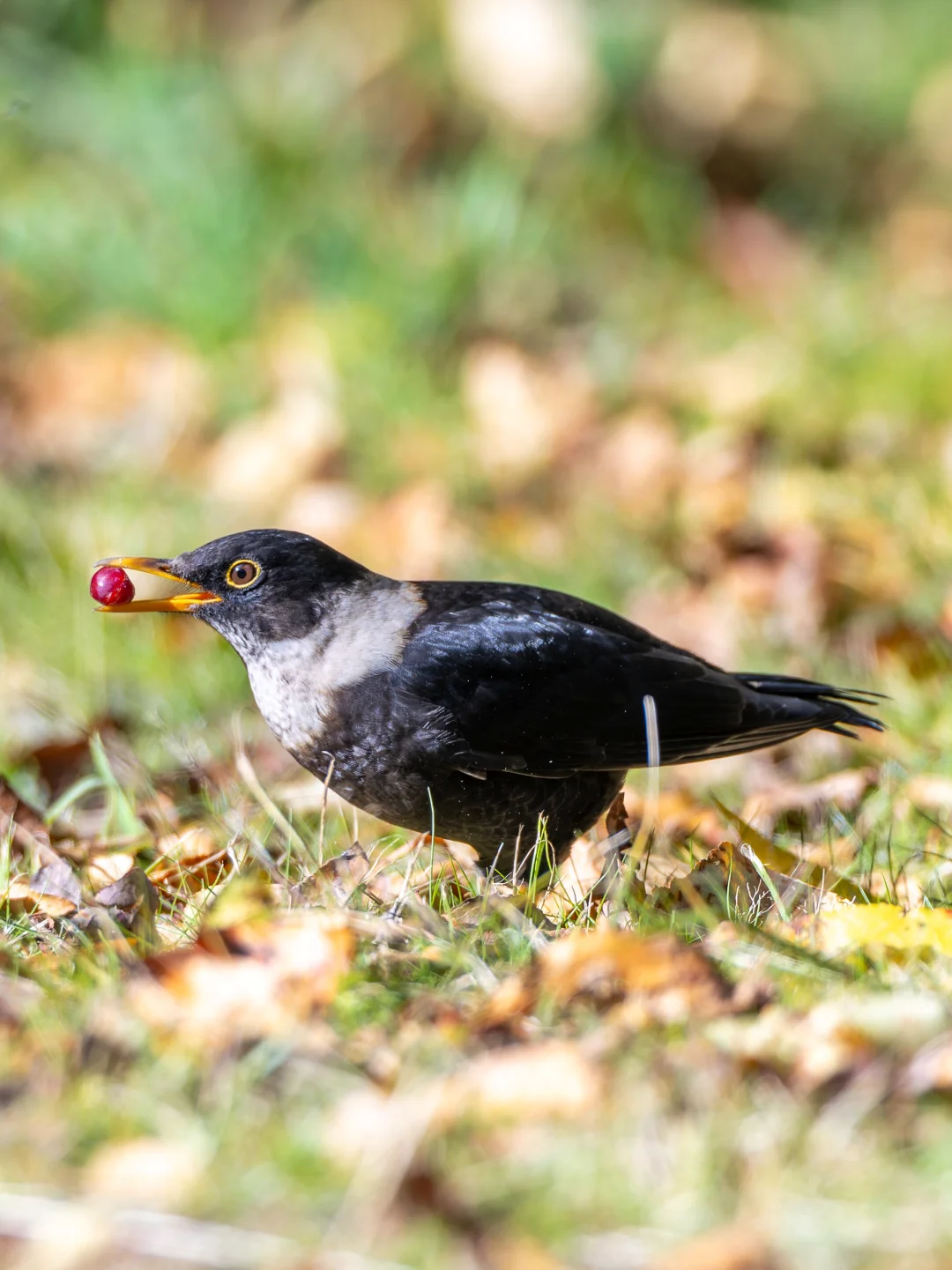 原创拍摄 白颈鸫,White-collared Blackbird,雀形目鸫科鸫属。英文名字竟然不是鸫Thrush,而是白颈黑鸟blackbird,哈哈哈。它们分布于喜马拉雅山脉到我国川西。 这是鸫的另外一种皮肤,最显著的特点是明亮的白色颈环,环绕至中胸部位。雌鸟p7~9颜色比较朴素,对比度较低。 白颈鸫属于高原鸫,分布区域比较特别。而且喜欢吃浆果,在地上在树上的这些红果果看上去就很美味。