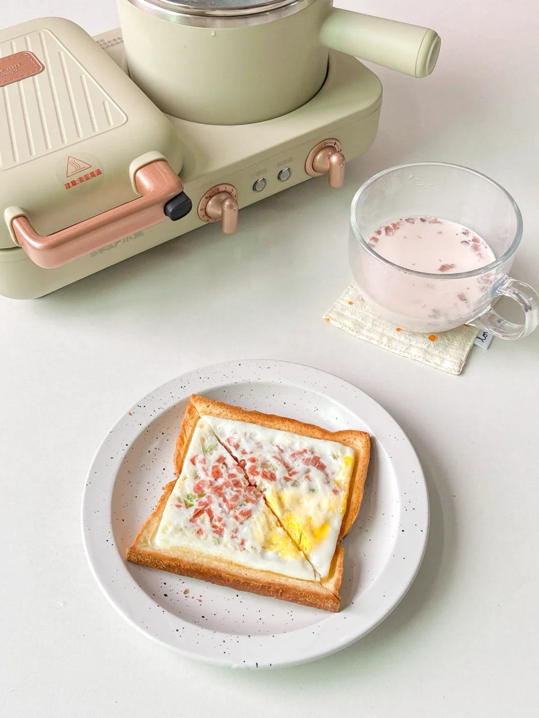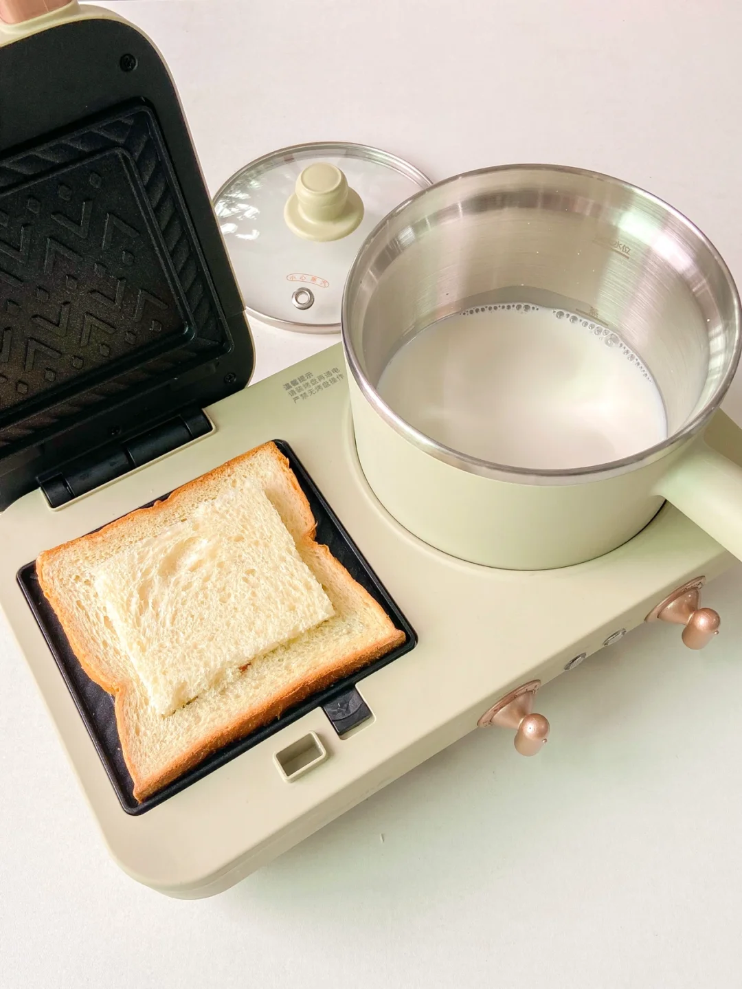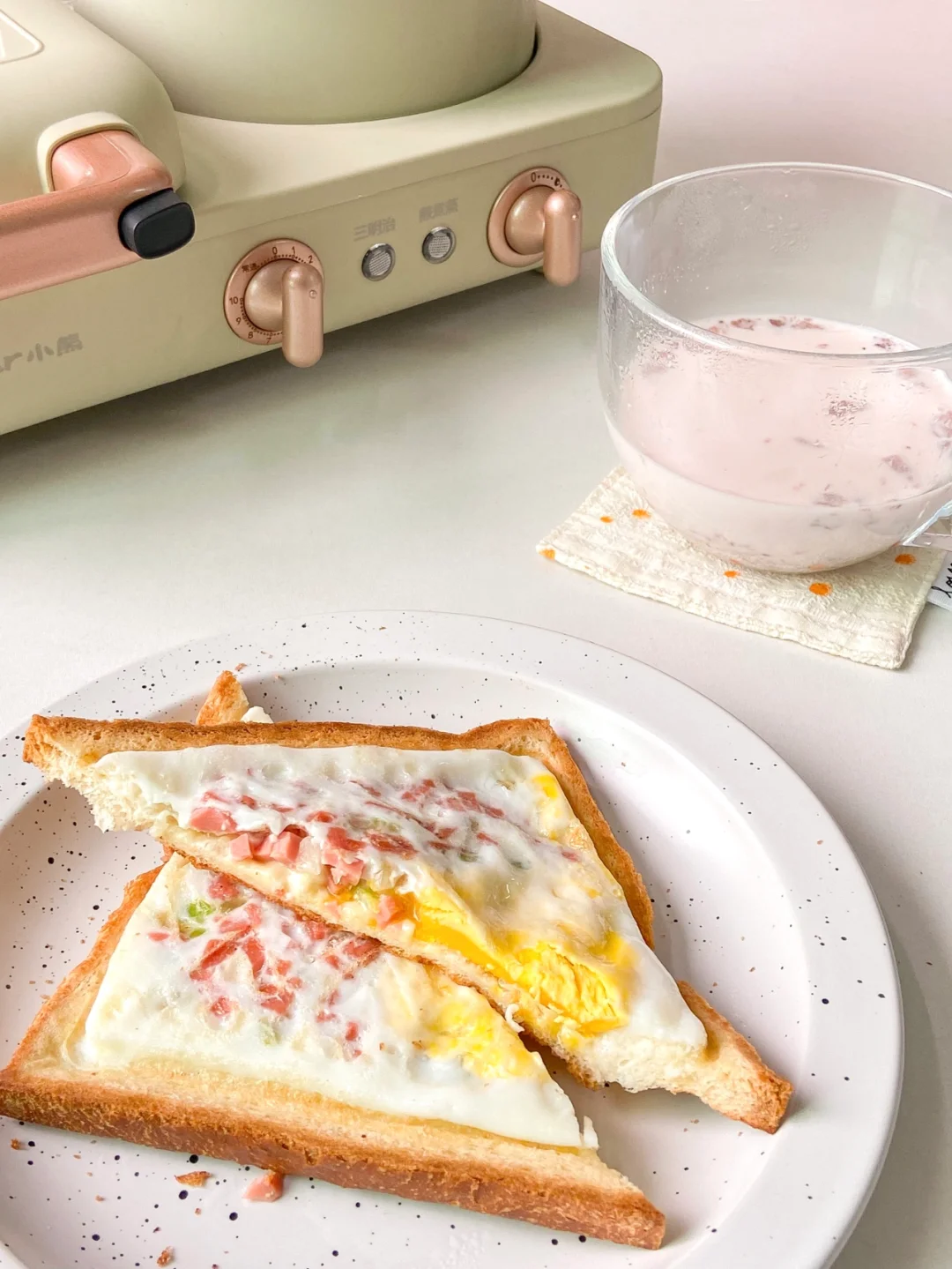 三明治配燕麦牛奶健康又营养 一片吐司不够吃 小熊早餐机一机多用的功能方便又省时间 几分钟就可以做出丰盛的早餐 超级喜欢👩❤️💋👩