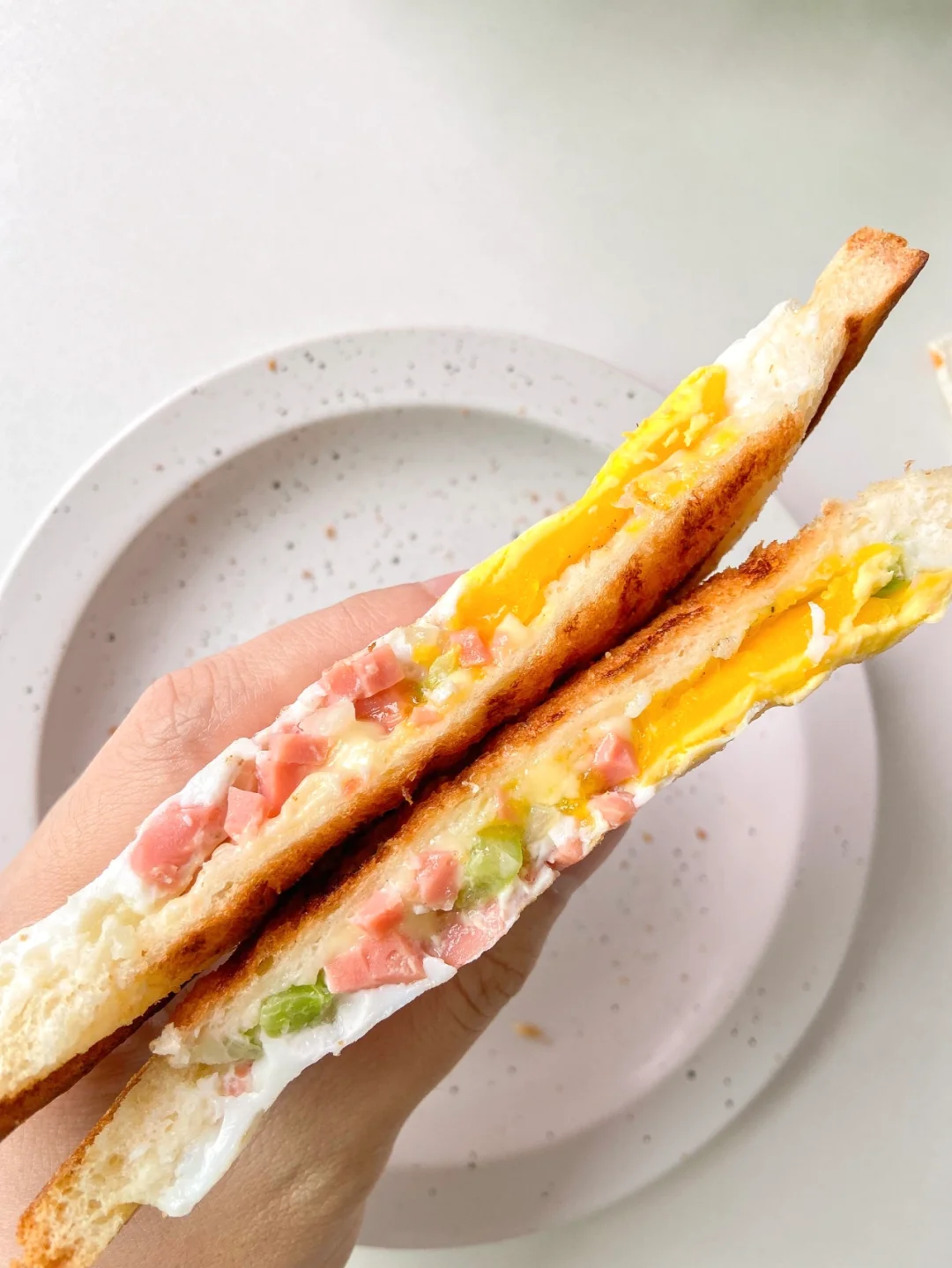 如果家里只剩下一片吐司了怎么办 那就用早餐机来做这款爆浆芝士吐司吧! 简单又好吃而且还很漂亮😋