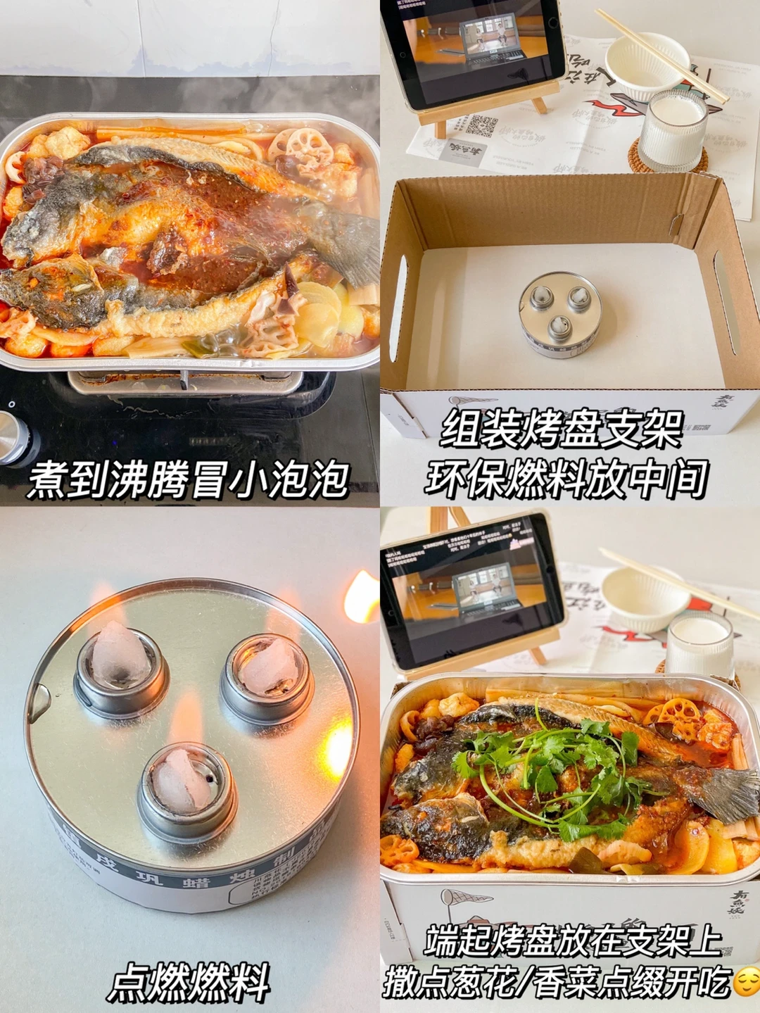 4️⃣组装烤盘支架 将环保燃油点燃放在支架中间用于保温 端起烤盘放在支架上就可以啦✅