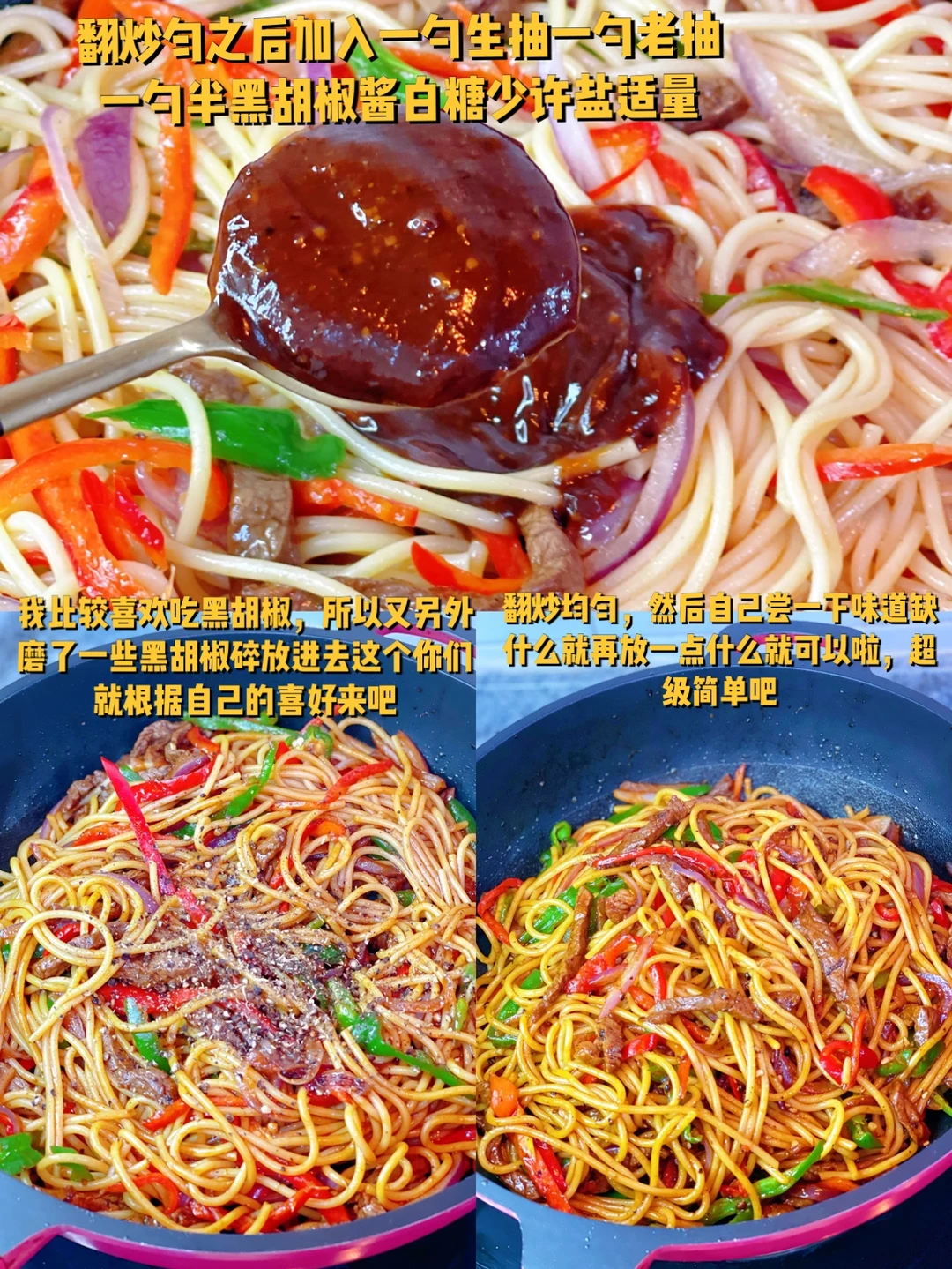 10. 翻炒匀之后加入一勺生抽一勺老抽一勺半黑胡椒酱白糖少许盐适量