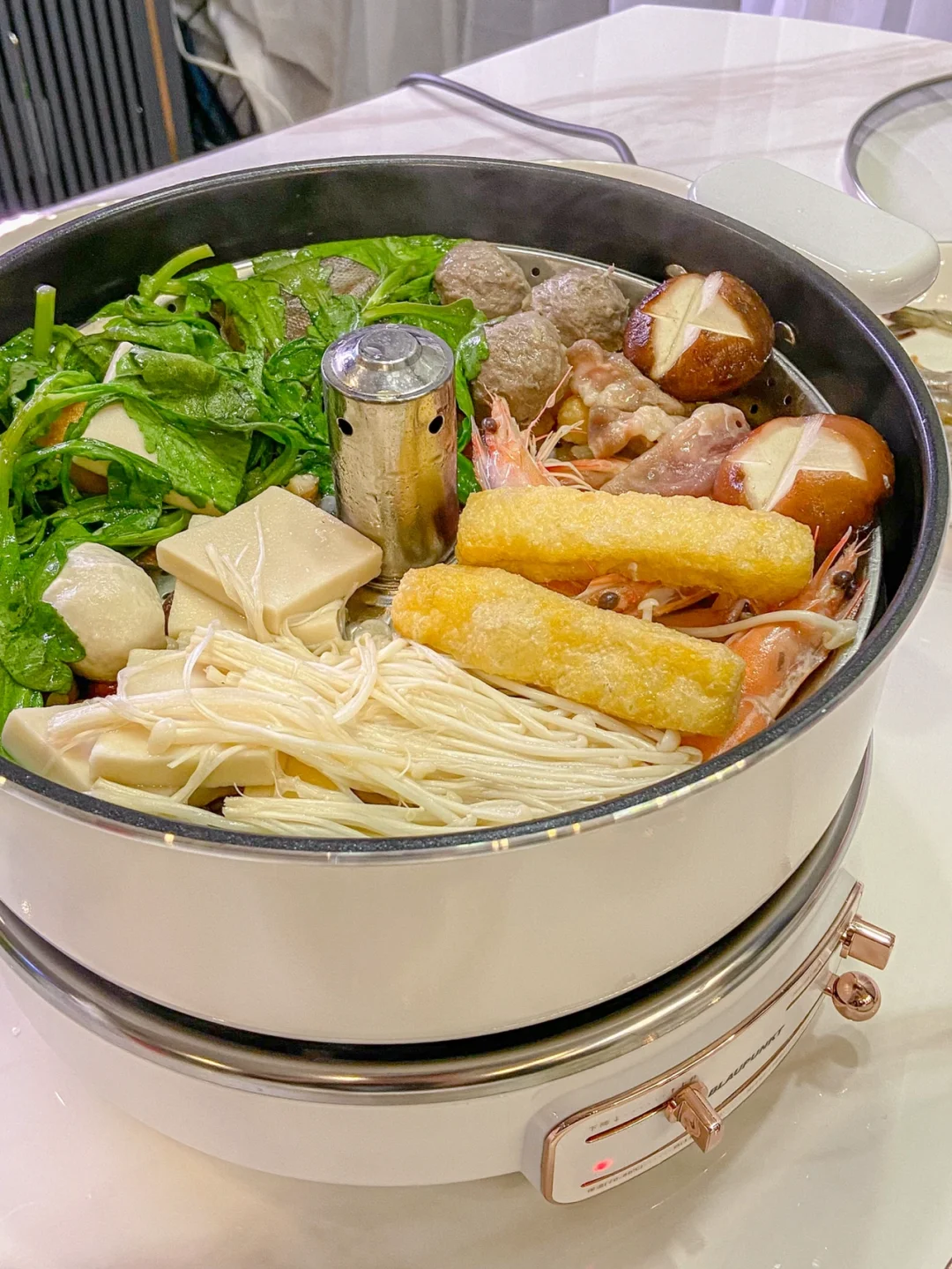 相比起其他的锅子它的亮点就是可以升降了 有了他谁还挽起袖子捞锅底呢 食材放好降下去煮 煮好升起来就不用怕夹不到菜啦 有了它连漏勺都不需要了☺️