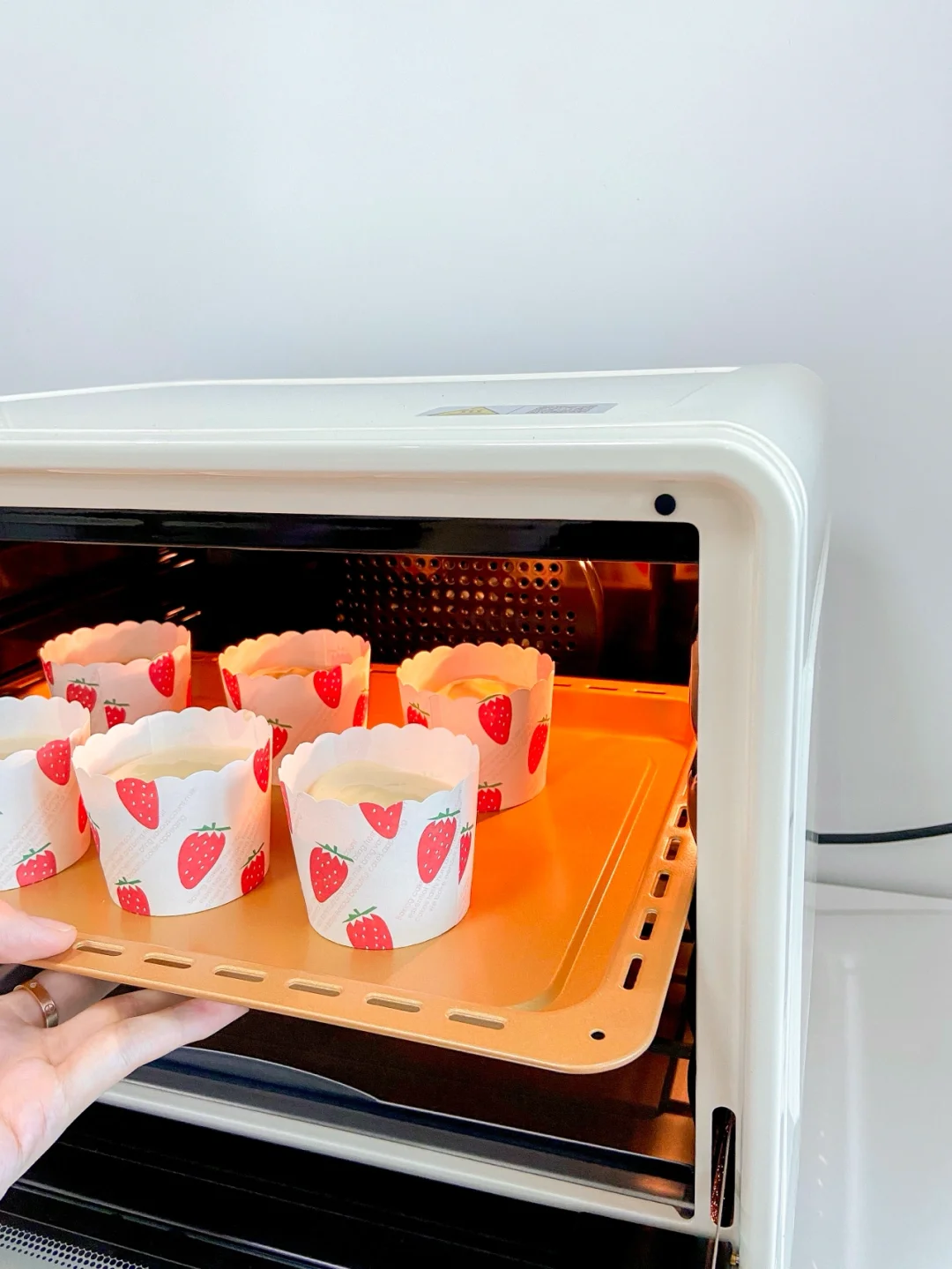8️⃣ 烤箱165度提前预热 将蛋糕放入烤箱中层 上下火165度烤20-25分钟左右