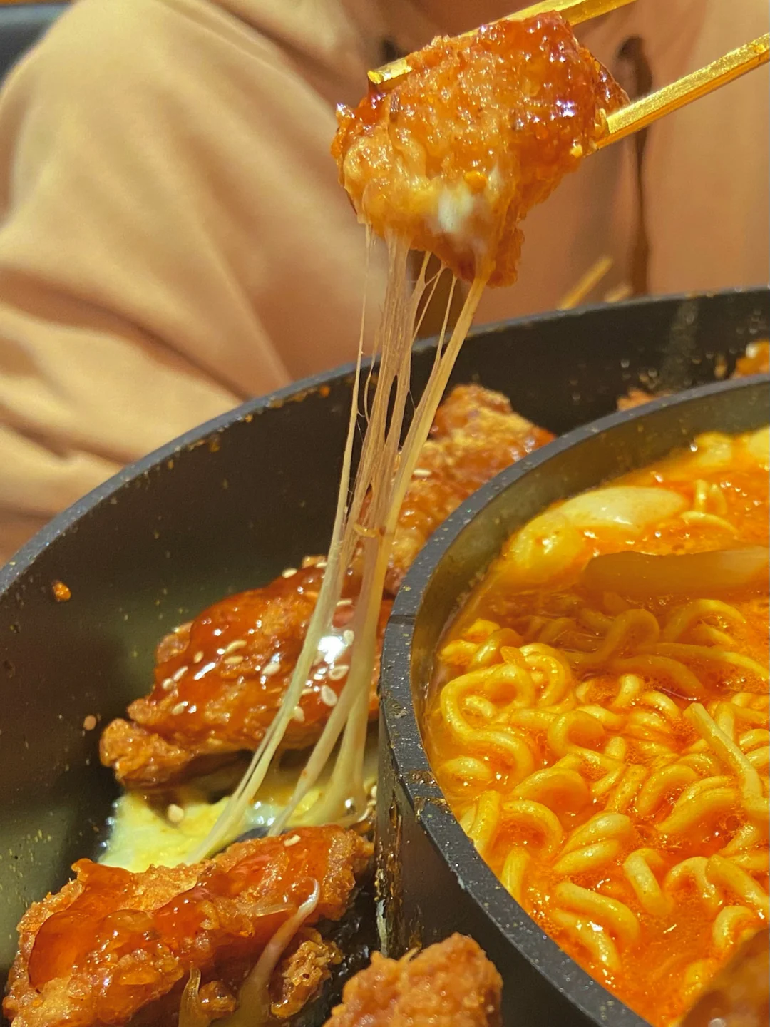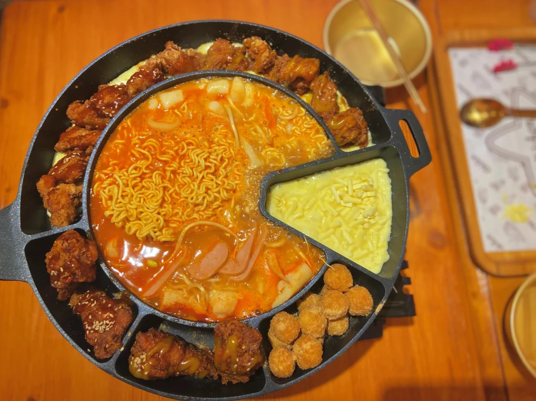 |UFO芝士炸鸡锅|拉面部队锅颜值真的超级高赶紧来尝试一番 味道满分 炸鸡裹芝士太好吃了 拉丝的感觉也超棒👍🏻💰99一份 是没有放面条的哦 我们厚脸皮的强烈要求老板给我们放个泡面[偷笑R]老板说因为锅小 放不下 我让他掰开一点放下去的 加个一包泡面的价格5块钱 毕竟没有泡面没有灵魂阿 好吃又好看 假装在韩国的拍照图直出[得意R] PS:妙龄鸡也超好吃哦 据说一天只有一百只 卖完就没咯