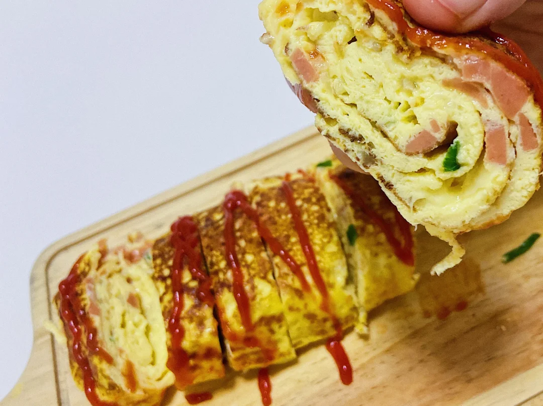 还记得每次去韩国料理店都会点一份芝士鸡蛋卷 把鸡蛋换个花样 加入芝士片(芝士碎)和火腿做成蛋卷口感咸香美味 营养又丰富 搭配一杯热牛奶不要太好吃啦❤