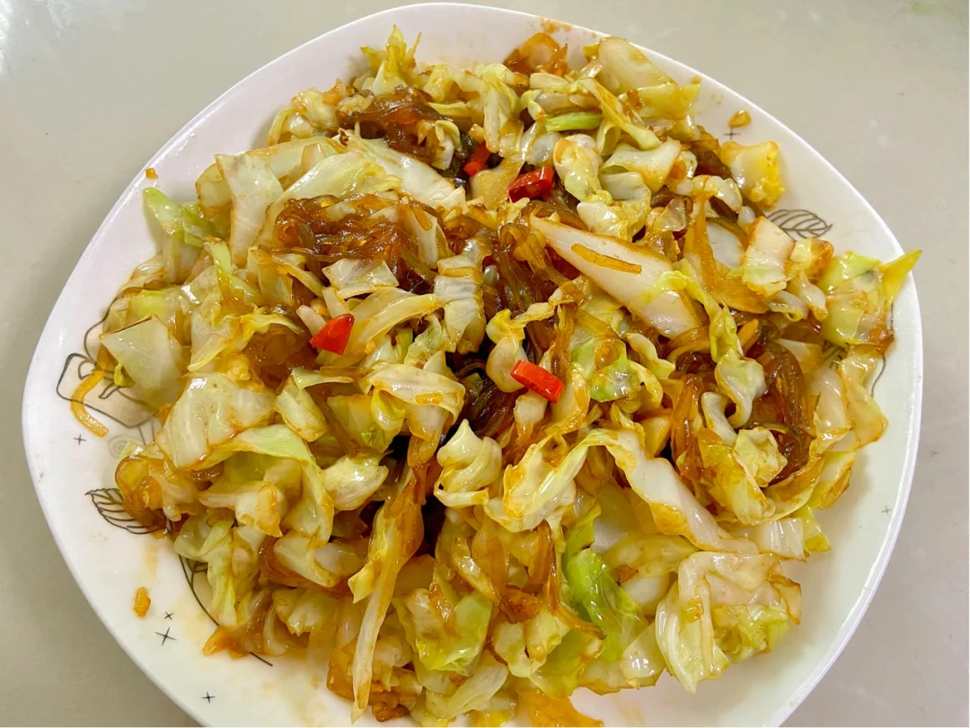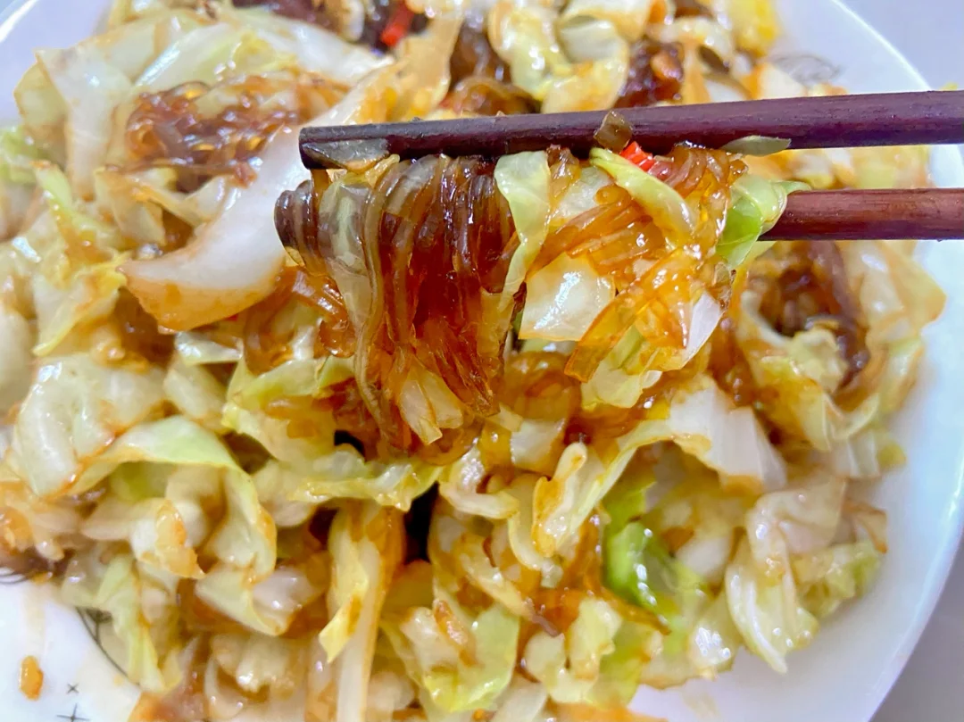 包菜半个 红薯粉丝一把 葱蒜小米辣适量