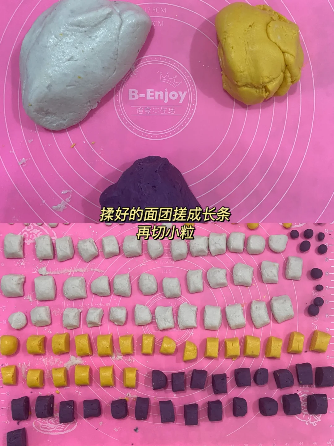 3️⃣加入木薯粉 揉好的面团搓成长条,再切小粒即可✔️