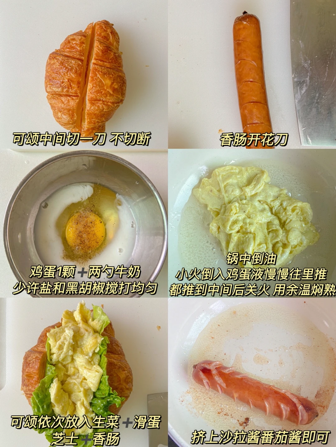 鸡蛋1颗 牛奶 可颂 芝士 香肠 生菜