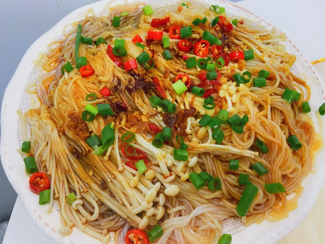 巨下饭的金针菇这 比肉还好吃!蒜蓉金针菇 金针菇裹满酱汁 蒜香浓郁 吸溜一口粉丝好吃到停不下来!