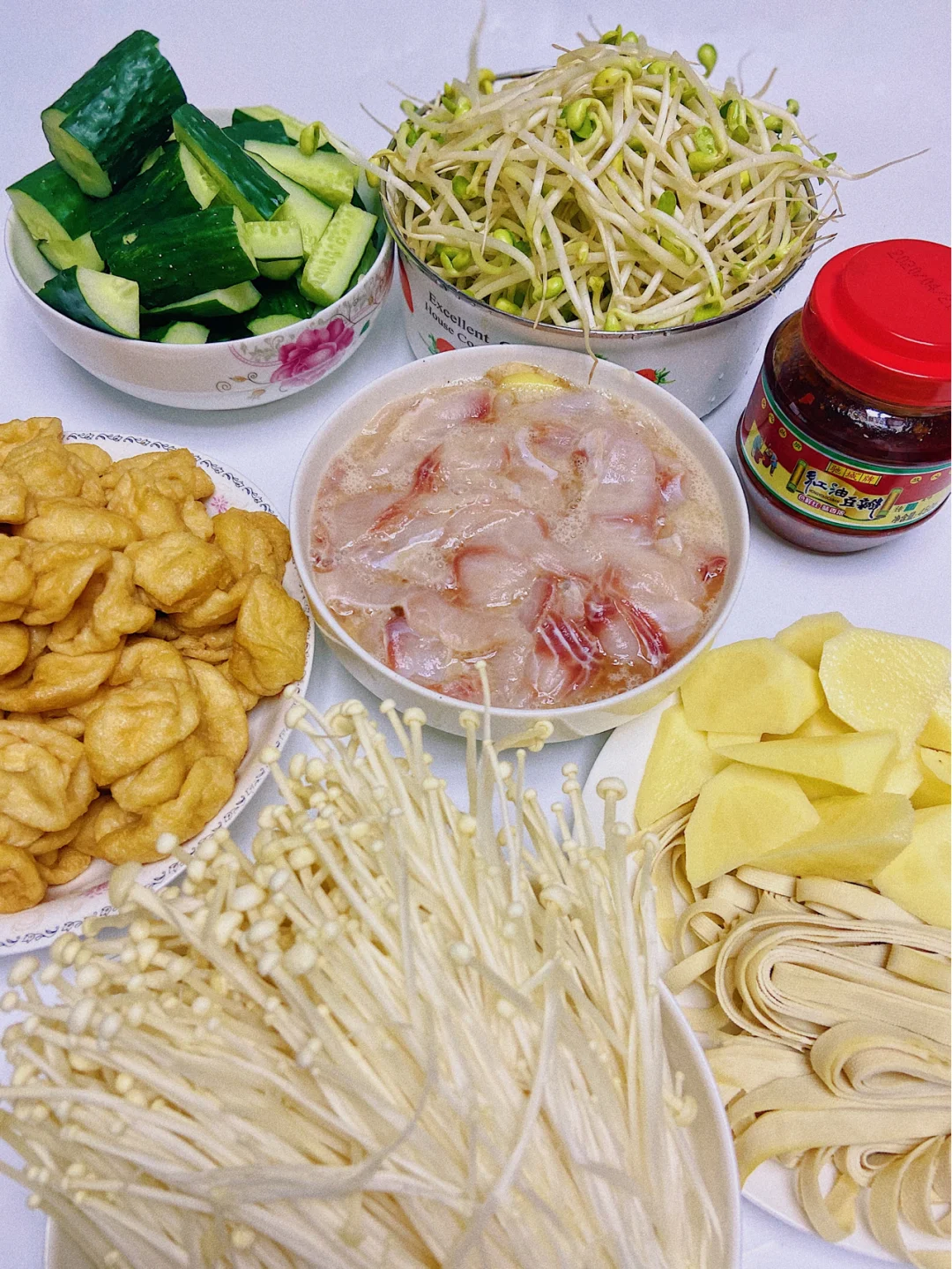 金针菇 豆芽 豆腐泡 黄瓜 土豆 千张
