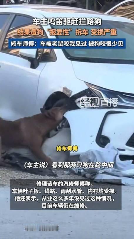 1月8日,广东广州一辆轿车被两只狗撕咬受损,引发关注。车主称曾因狗挡路按喇叭驱赶,随后停车离开,返回时发现车辆被“拆”。维修人员表示叶子板、线路等多处受损,维修费用约2000元,目前车辆仍在维修中。 这起狗咬车事件在广州引发了不少关注和讨论,主要集中在宠物管理、公共安全以及责任归属等方面。 首先,狗主人在事件中是否尽到应有的监管责任?狗狗在公共区域的行为是否得到了有效控制,直接关系到公共安全。狗咬车导致车辆受损,除了财产损失,也可能引发交通安全隐患和邻里关系的紧张。 其次,车主的反应也值得关注。根据描述,车主曾因狗挡路按喇叭驱赶,事后选择离开,可能是出于无奈或避免冲突。事后返回发现车辆被“拆”,也反映出事件的突发性和复杂性。 从法律角度看,宠物造成财产损失,责任归属需根据具体情况判断。如果狗主人未能有效控制宠物,可能需要承担相应赔偿责任。而公共场所的管理者和物业,也应加强宠物管理措施,防止类似事件再次发生。 这件事也提醒我们:宠物管理不仅关系到宠物的权益,更关乎公共安全和邻里和谐。作为宠物主人,应加强责任心,确保宠物在公共区域的行为安全;而公众也应理性应对突发事件,避免过激行为。 你怎么看?类似事件频发背后,反映出哪些社会管理上的不足?我们又可以采取哪些措施,既保障宠物权益,又维护公共安全?