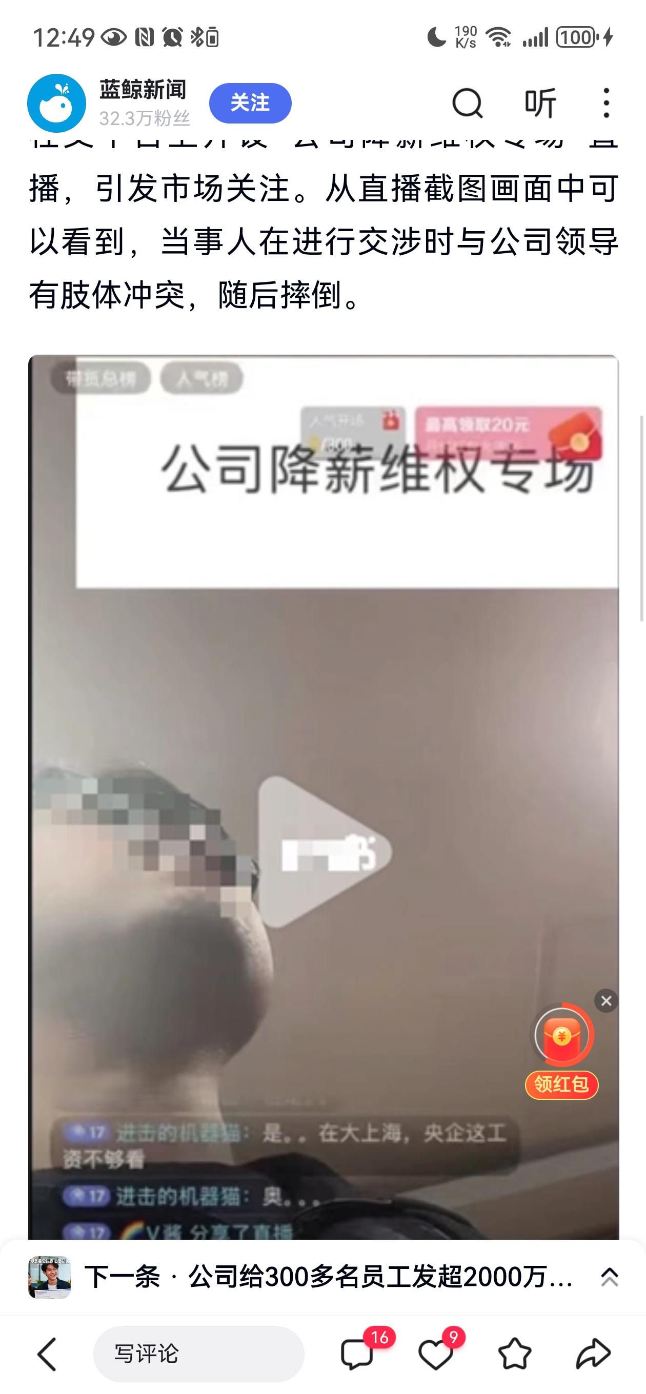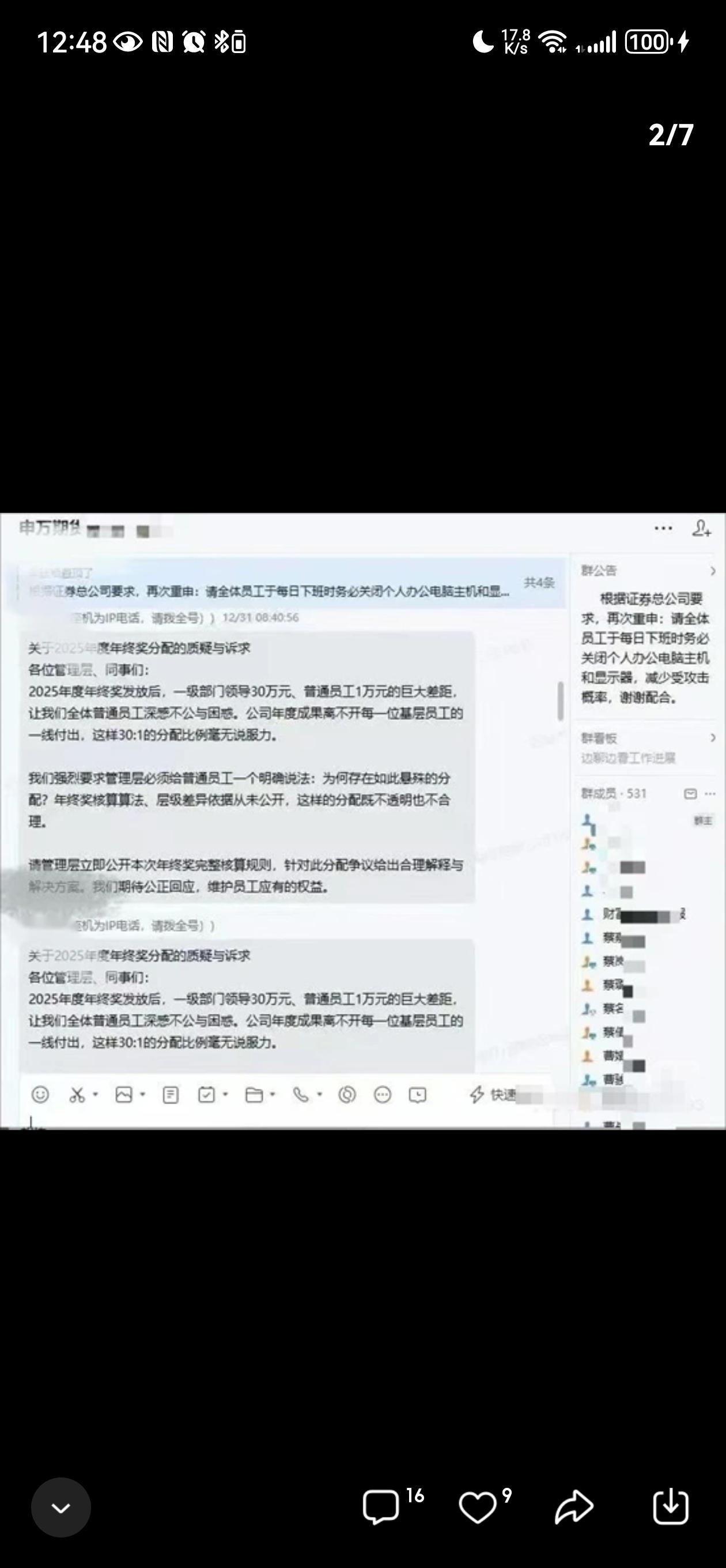 近日,网络流传截图称,申万期货年终奖分配存在巨大差距,“领导30万,员工1万”,引发员工公开质疑并维权。该公司一名员工因此事与领导发生冲突并受伤报警,随后被公司停职。申万期货官方回应称,相关信息不实,公司已报警处理,目前公安机关正在调查中。 这起“年终奖差距悬殊”的事件,瞬间点燃了公众的热议,也再次引发了对企业公平与员工权益的关注。有人愤怒质疑:在这个竞争激烈、讲究公平的时代,企业怎么能如此“天差地别”?更有人担心,这样的差距是否反映出企业内部管理的巨大裂痕?而更令人心痛的是,员工为了维护权益竟然发生冲突,甚至受伤报警,最终还被公司停职,形成了一个令人扼腕的“职场悲剧”。 从表面看,这或许只是个个别事件,但深层次却折射出当前职场环境的一个普遍问题:在追求业绩和利益的同时,企业是否真正关心员工的感受与权益?员工的抗争,是否被视为“扰乱秩序”的行为?而企业的回应,又是否能真正解决问题,还是只是在用“官方声明”遮掩矛盾? 这场风波背后,隐藏着一个值得反思的社会现象:在追求快速发展的同时,我们是否忽略了“公平”与“尊重”的底线?员工的权益到底该如何保障?企业与员工之间的信任,又该如何重建?更重要的是,公众期待看到的不仅仅是“真相的澄清”,而是一个更加公平、透明、有人情味的职场环境。 这次事件,或许只是冰山一角,但它提醒我们:无论企业多么追求利益最大化,公平与尊重永远是不可或缺的基石。每一份努力与付出,都值得被尊重;每一份权益,都应得到保障。只有这样,社会的职场生态才能更加健康、和谐。你怎么看?这场“差距风暴”背后,隐藏着怎样的深层次问题?让我们一同思考,共同期待一个更公平的未来。