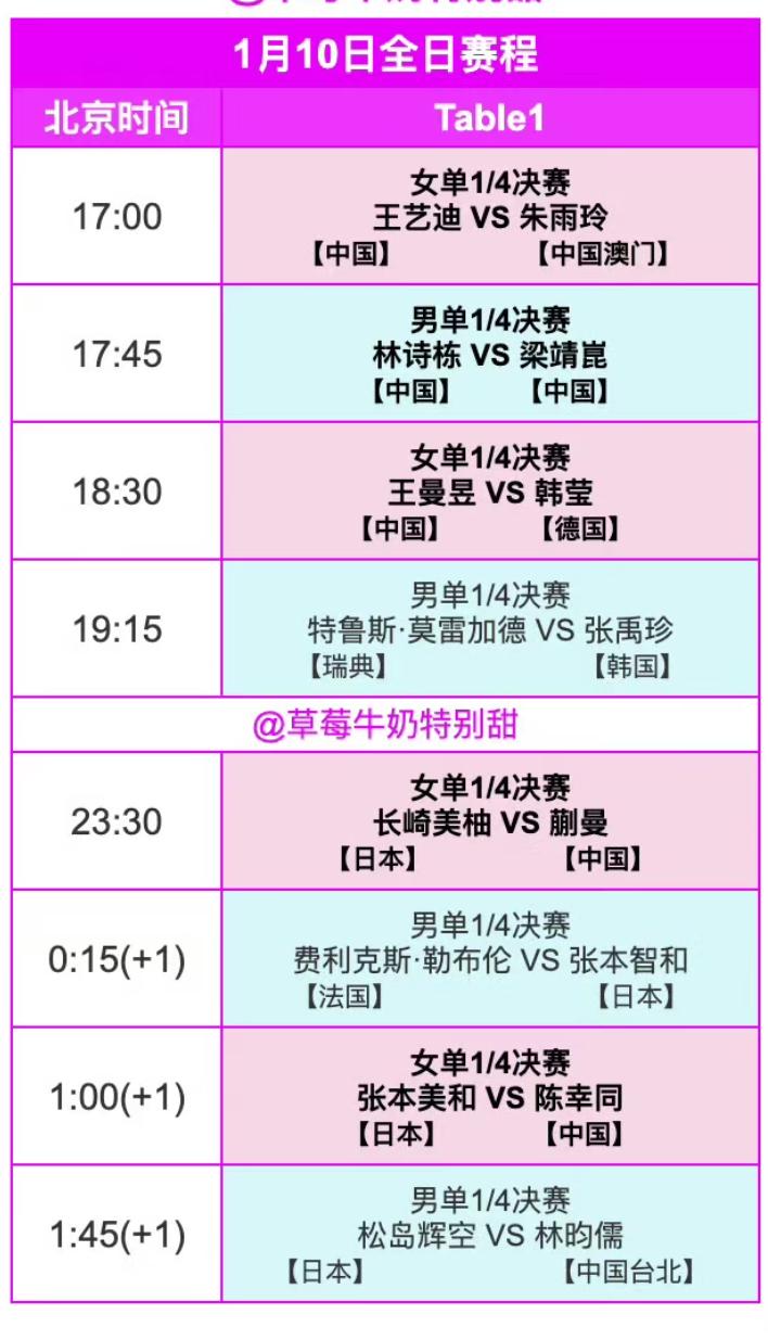 多哈冠军赛1月10赛程—张本智和VS小勒布伦头对头记录 1月9日,WTT多哈冠军赛, 张本智和3:1周启豪晋级男单8强, 小勒布伦3:0邱党,晋级8强! 就说这次邱党怎么一局没拿, 没有一点拼劲啊! 小勒布伦与张本智和以往的交手记录 显示,小勒布朗对张本 保持5胜两负的优势战绩, 1月11日凌晨00:15 小勒布伦VS张本智和, 他俩最后一次交手是在不久前的 总决赛中, 小勒布伦3:4张本智和, 以微弱差距惜败! 这次比赛就是小勒布伦的复仇之战, 希望小布胜出, 虽然我们的林诗栋或梁靖崑 打他们谁都不好打!