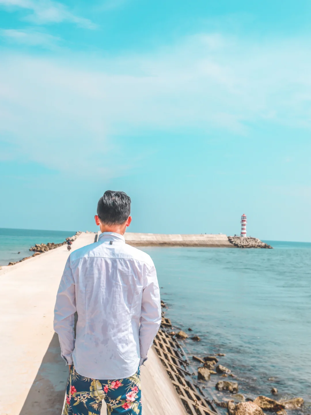 3、在去灯塔半路上也很出片,做一些夸张的舒展动作和灯塔更配哦。