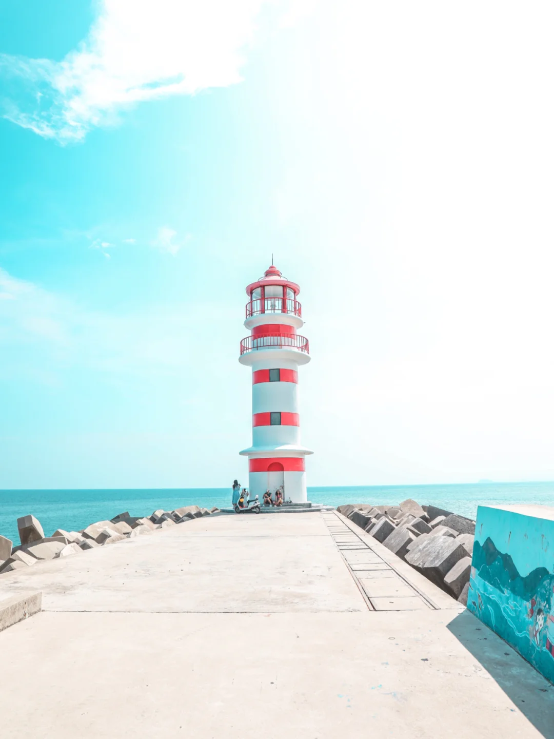 6、个人建议中午去拍摄光线会更好,更有清新的感觉。阳光、蓝天、灯塔真的太搭了。