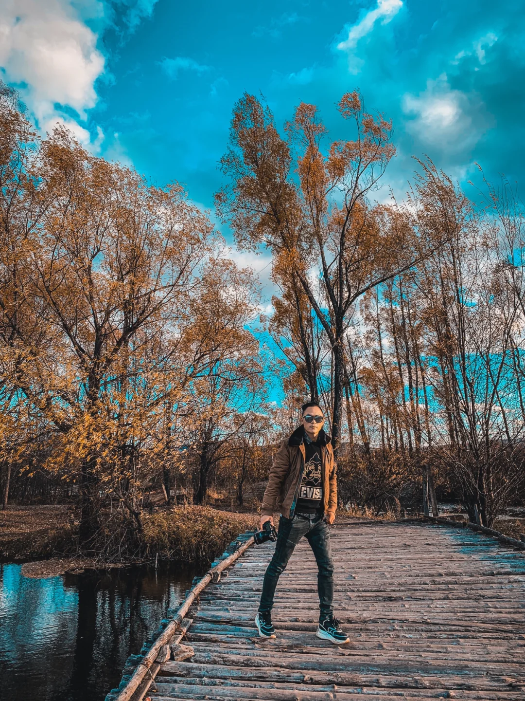一直没有把根河当作呼伦贝尔自驾游的目的地之一 直到我来到根河, 很快,就爱上了这个被誉为中国冷极的城市 驯鹿是其中一个理由 开车进来道路两边美丽景色是其中理由之一 最重要的是,在去根河湿地公园的路上 一个叫做不冻河景区地方 在那里,我找到了醉美的【秋天的童话世界】 傍晚4点,夕阳倾斜洒进树林, 明暗的线条交织出童话般的世界 不冻河在阳光的照耀下熠熠生辉, 本来打算去根河湿地公园的, 此次此景,决定就在这里好好玩一下。 果然不负众望 坐过木桥,回头一看 金灿灿的树林、河流、蓝天白云, 还有木桥就像油画一般 情不自禁用相机定格这美好的瞬间。 推开栅栏门, 仿佛听到最美的那一句:“你回家了,我在等你呢!” “门前的老树长新芽,院里枯木又开发” “一城护水将绿绕,两山排闼送青来” 正如,山不在高,有仙则名。 根河的美,就在这一个个不起眼的地方 虽然不起眼,但只要你用心发现它 你就会彻底喜欢上它。 如果下一次再来,我会把重点放在根河。 用心去发现根河更多更美的风景。