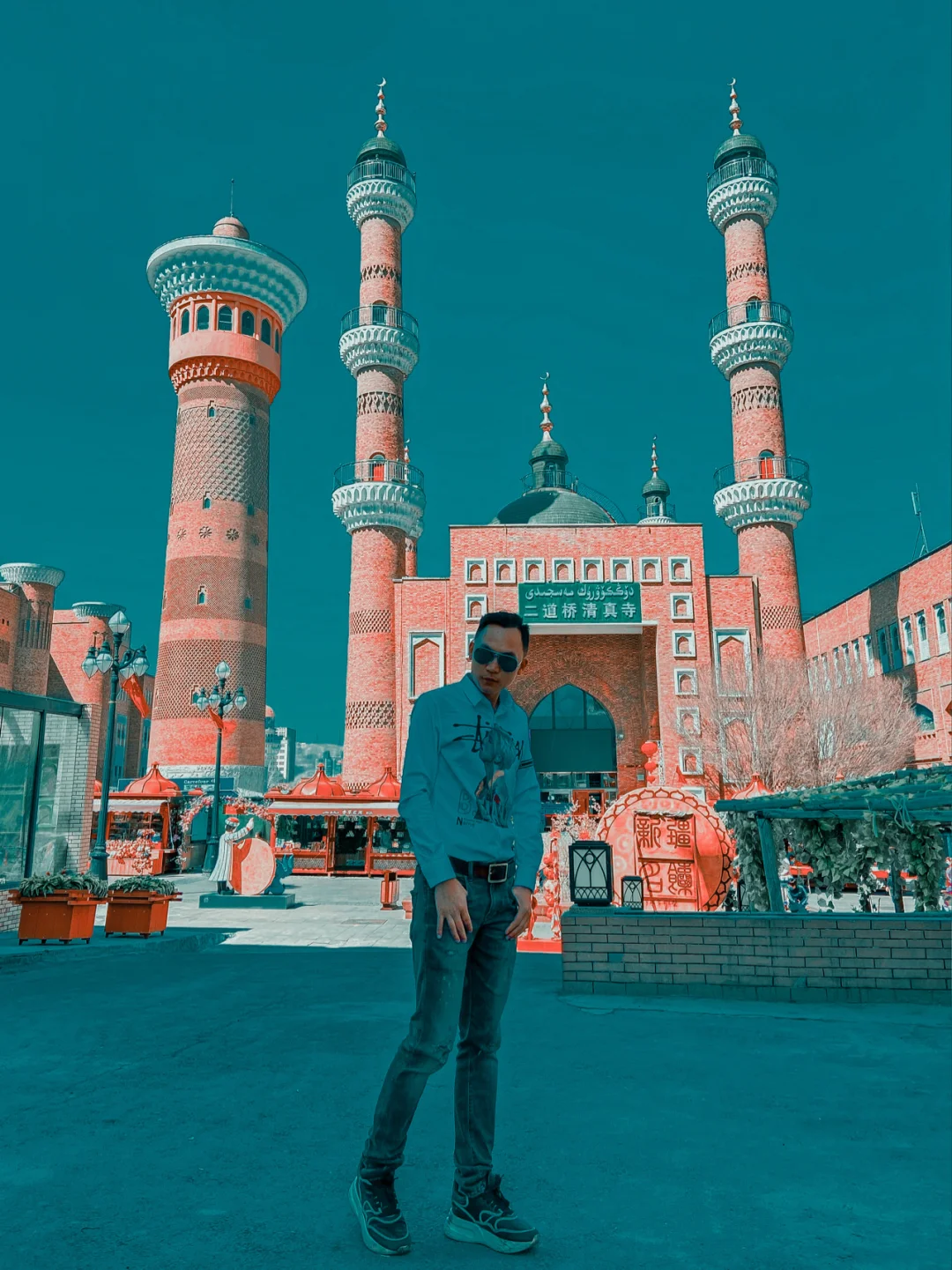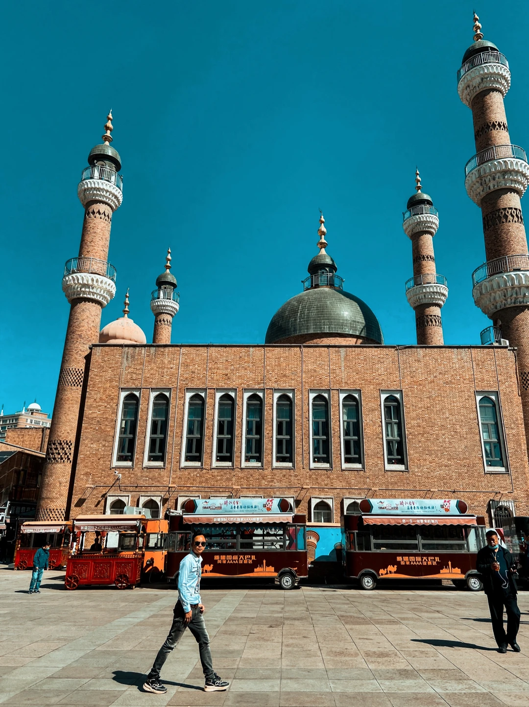 1⃣️大巴扎里面,二道桥清真寺正门这里,可以走远一点,这里可以拍到全景。