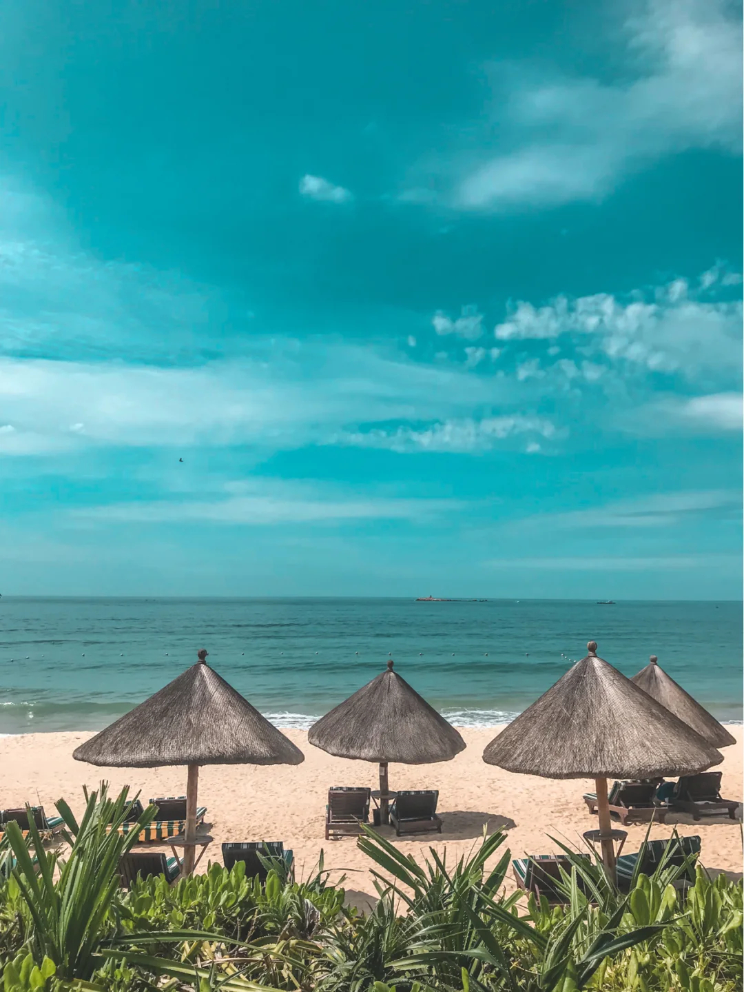 【海滩很漂亮】沙滩很白很细,沙滩上有很多躺椅,有很多海上游玩项目,海浪适合简单的冲浪。沙滩挺热闹好玩。有太阳的时候海水很蓝很漂亮。