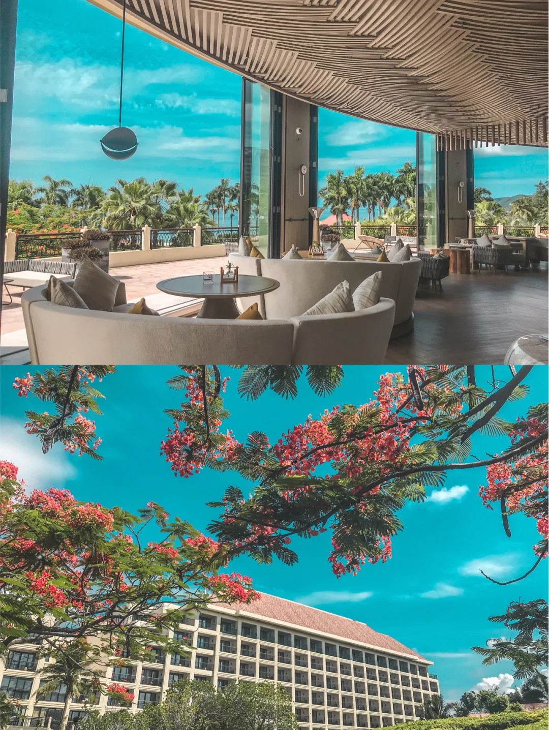宽敞的大堂、无敌一线海景、欧式的园林、火红的凤凰花、网红秋千,还有舒适的房间,因为有这一切才有面朝大海春暖花开的美好。超级推荐这家酒店。