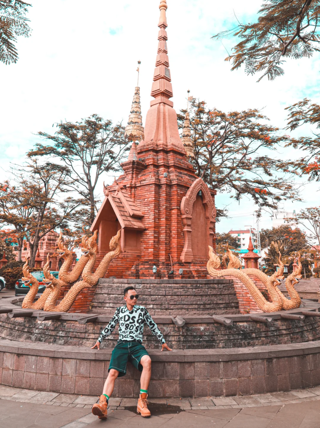 3⃣️停车一进来有个金色佛塔,站着拍、坐着拍效果都不错。