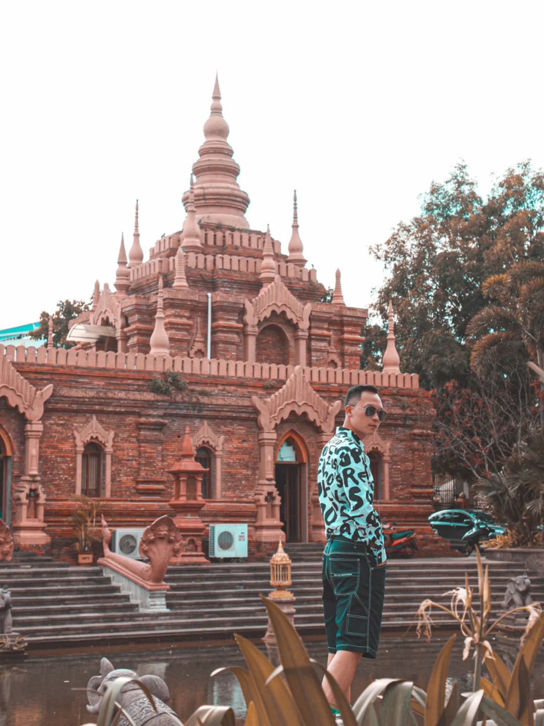 5⃣️以红色小塔为前景,背景是河对岸的傣族建筑,可以抓拍行走的感觉,也是很酷的。
