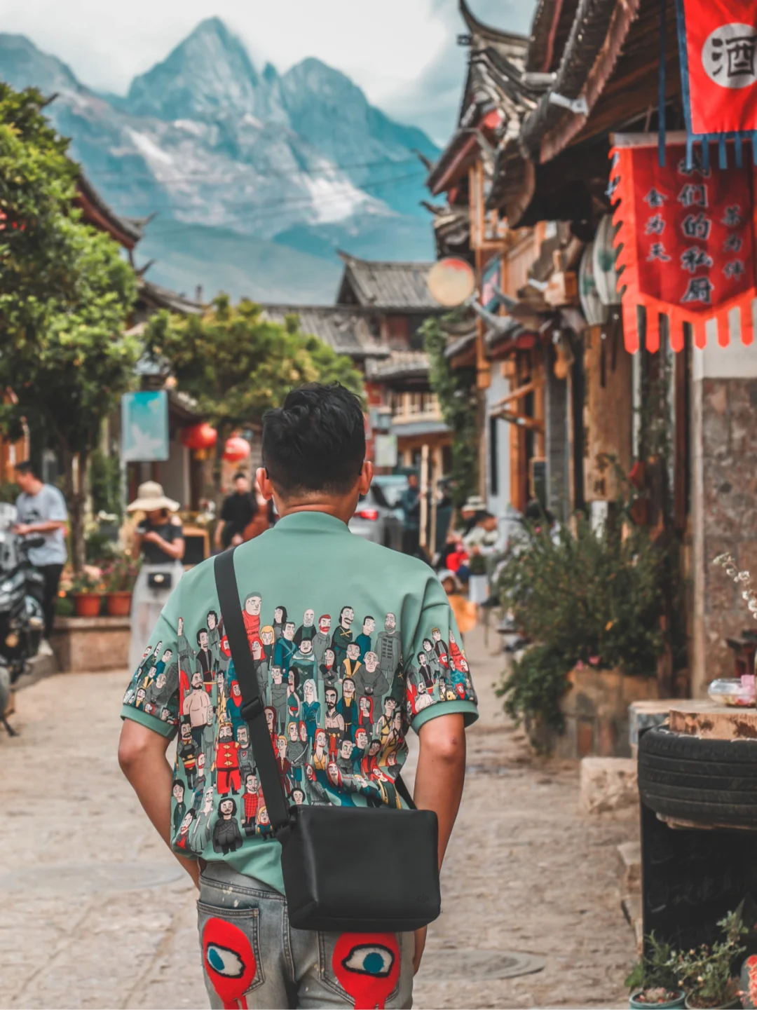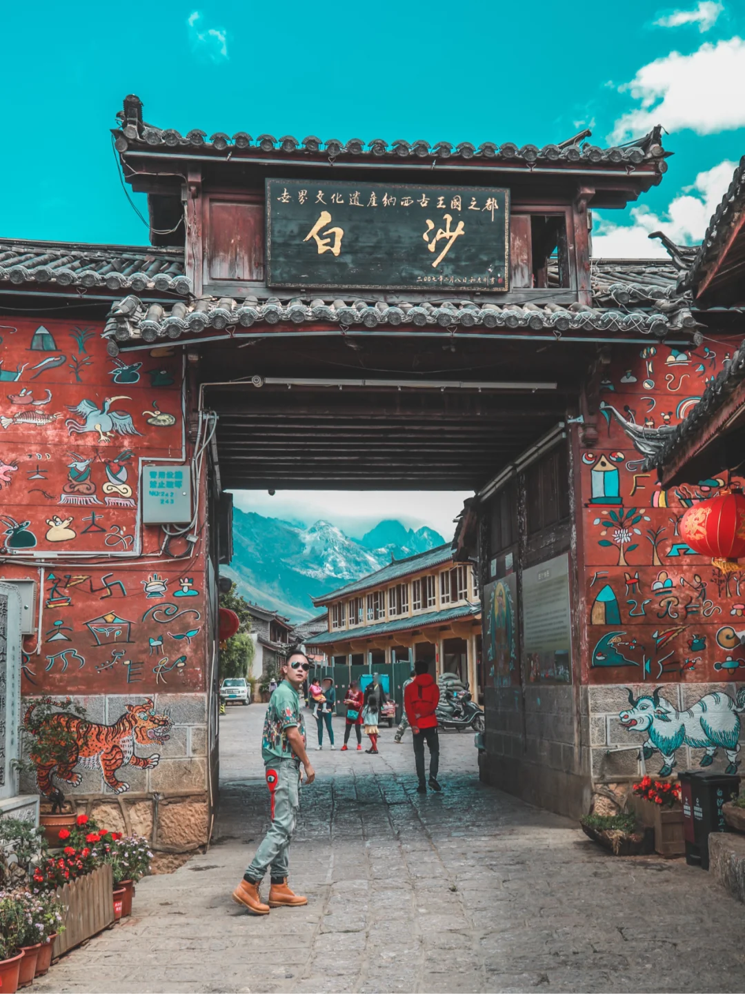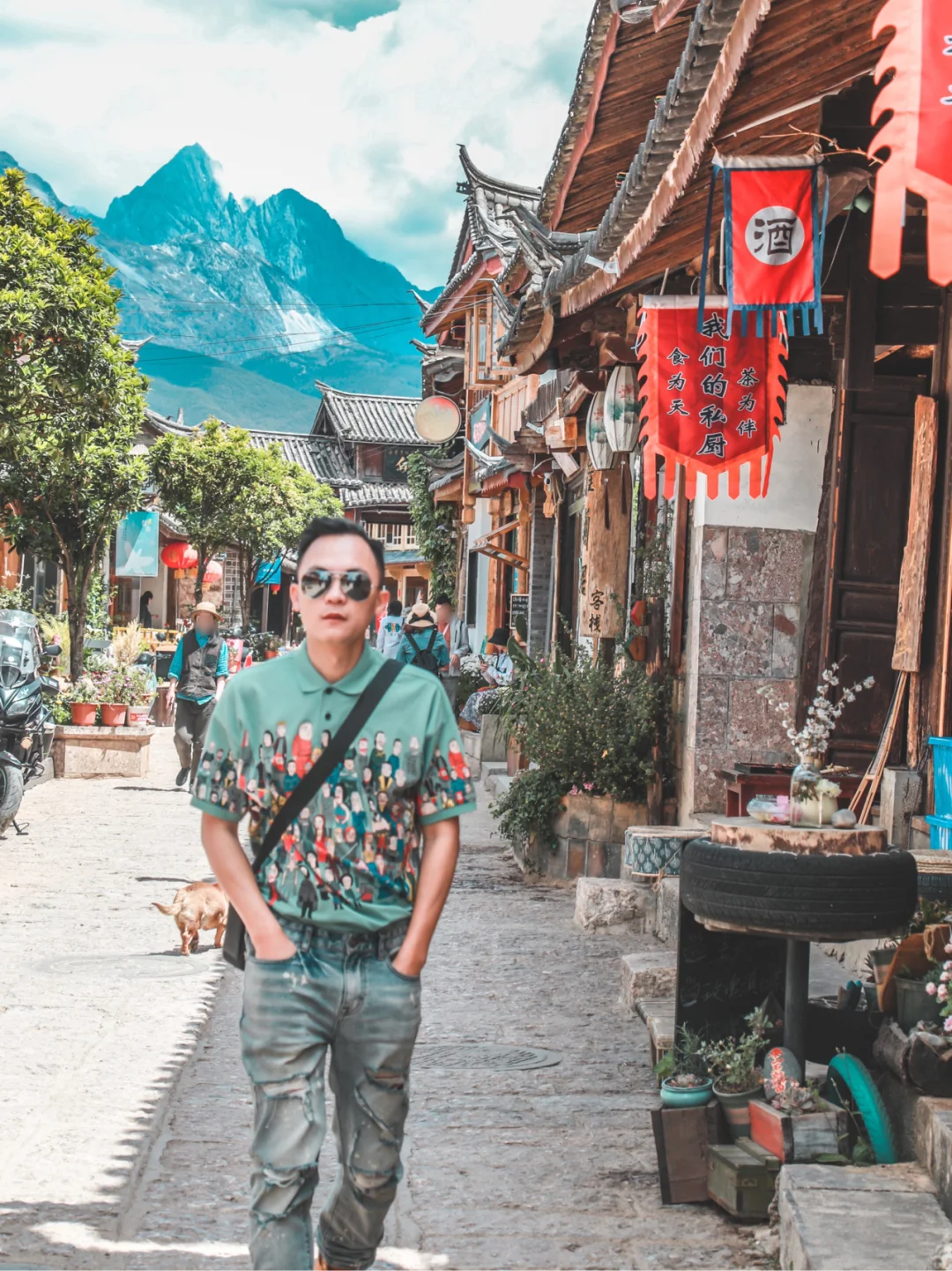 2⃣️走在石板路上,以玉龙雪山为背景。(只要你抬头看见玉龙雪山就是不错的几位)