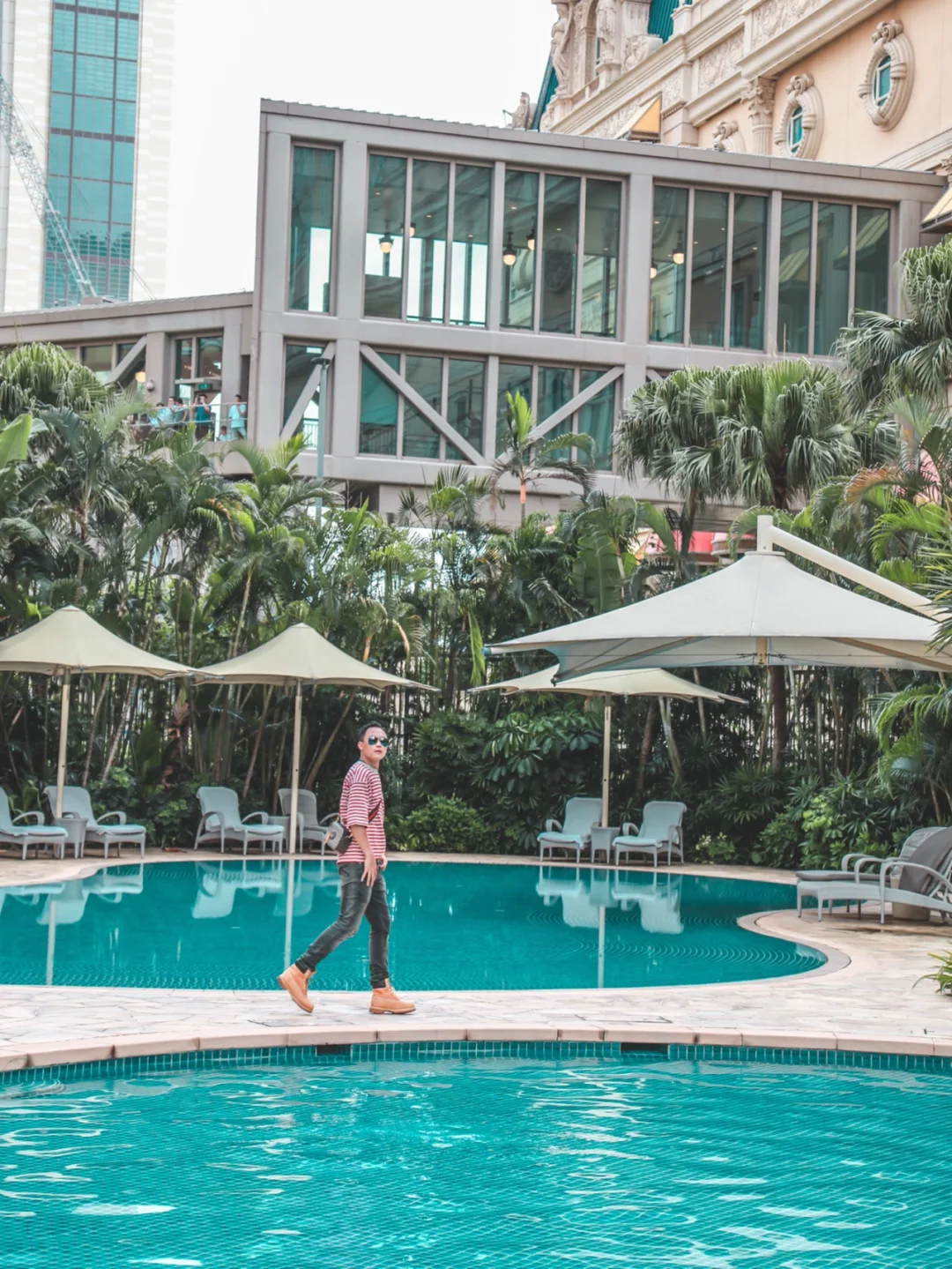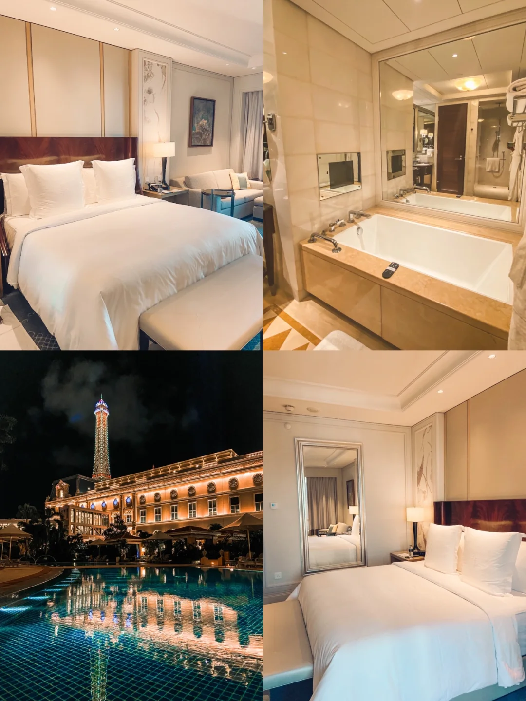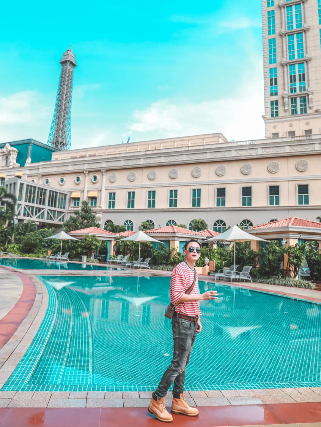 7⃣️泳池还超级好拍照,还可以拍到澳门巴黎人铁塔。特别是晚上的夜景,躺在泳池边,喝点东西,看着亮起霓虹灯的巴黎铁塔,真实太浪漫了。