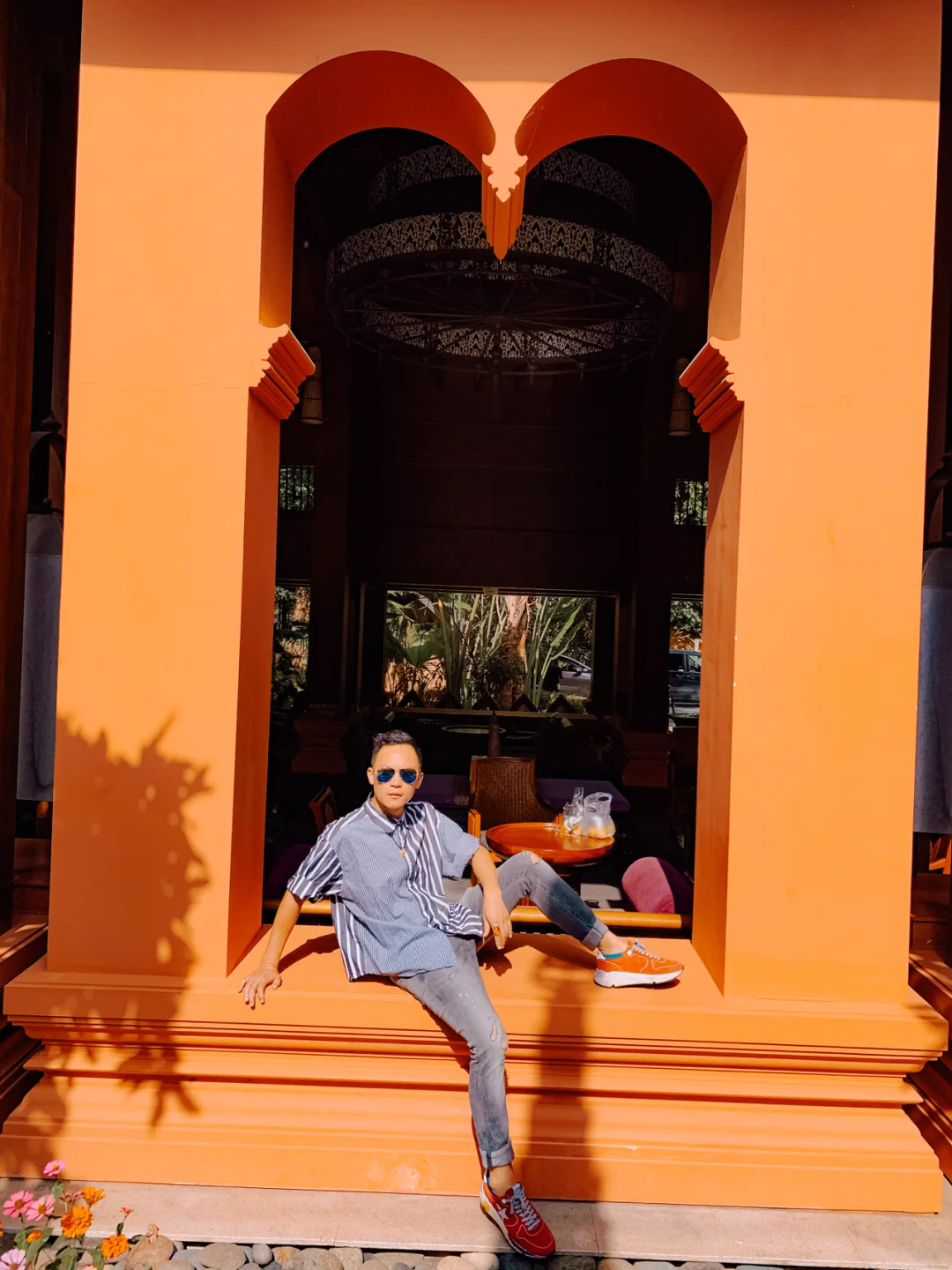 2⃣️下午3点前必须要去大堂前台左边的那个粉红墙拍照,特别是坐在窗边,太出片了。参考图4。