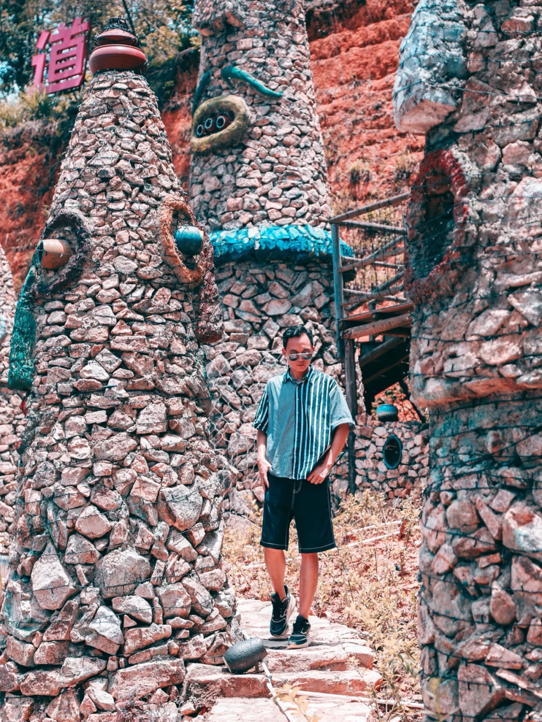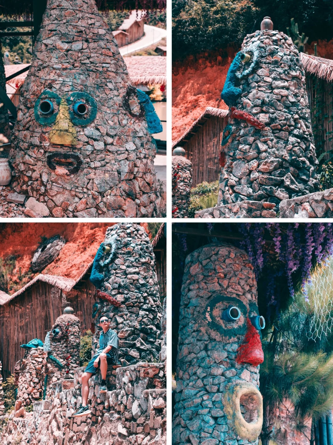 4⃣️找一个可爱的石头人,侧身依靠。