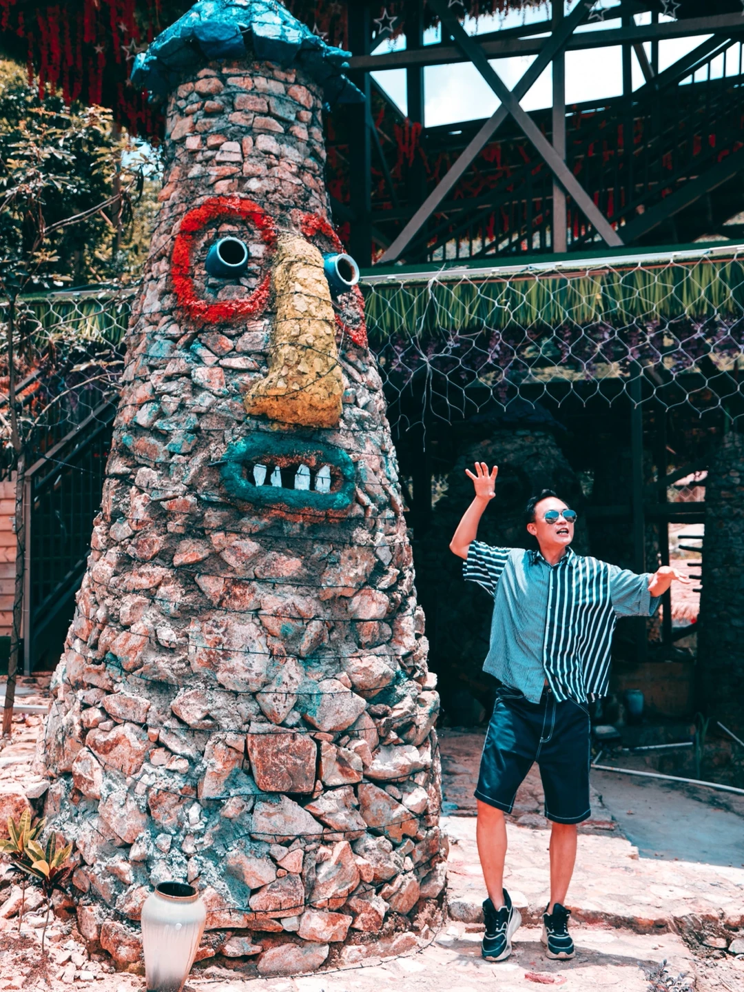 5⃣️找一个稍微怪异的石头人,作夸张的动作。
