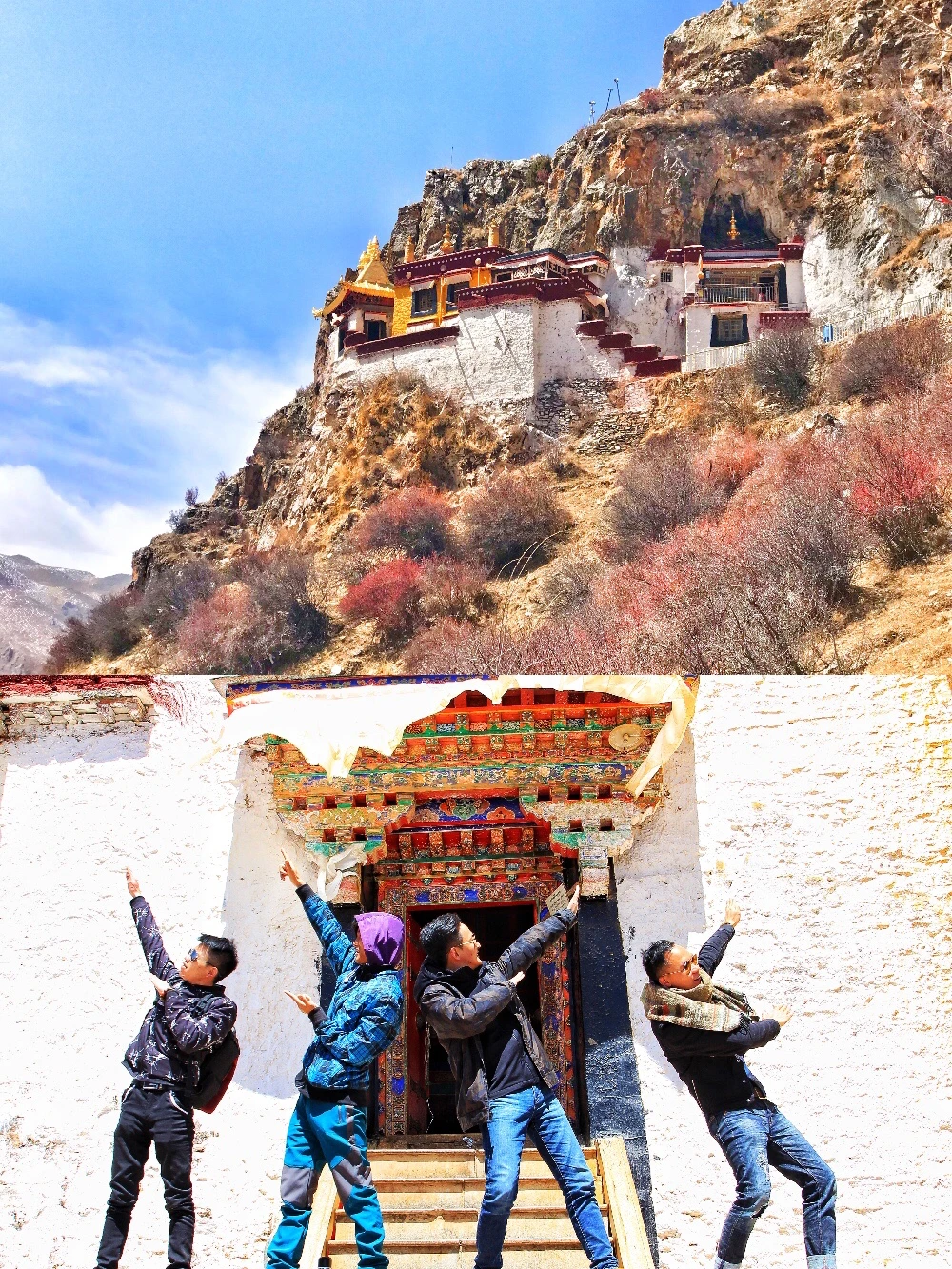 2、【扎耶巴寺】离拉萨市区大约一个半小时。门票20元。这里是西藏四大隐修地,寺庙建在悬崖峭壁上,跟不丹的虎穴寺很像。不足之处是海拔有点高,大概4000左右,如果在拉萨休整好了,上来这里是没有问他的。
