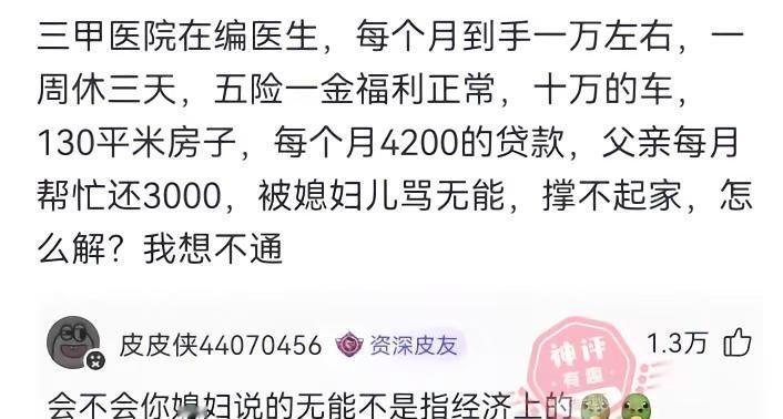 这个我信了,可能确实是硬不起来,不然怎么高待遇,当爹的还帮忙还3000,解释不通。