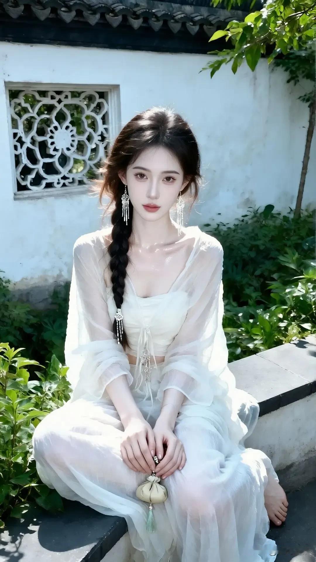 “海边的白衣少女,清新自然,宛如画中仙”🌊👗🌴