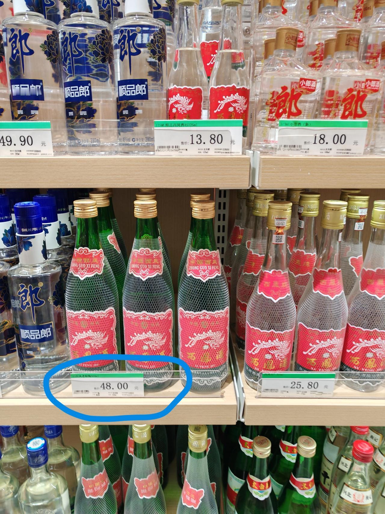 西凤酒价降了 1月10日,这是我昨天在西安一家店拍的两张图片,我去买白酒准备回家做泡菜 到酒水专柜转了一圈,意外发现绿脖子西凤酒价跌了不少。 绿脖子西凤是陕西人餐桌上的口粮酒,取高粱大麦豌豆,加秦岭山泉水采用千年古法工艺酿制而成,口感清冽,香气十足。 我公公以前特别喜欢这个绿脖西凤酒,一杯小酒配一碟花生米,甚至一碗燃面,一个辣子夹馍,都快乐不已。 家里有我们给他买的西凤20年30年,他兴趣不大,专宠绿脖酒,说好喝不贵,便宜不心疼。前几年我给他买过,清楚地记得价好像70元出头。 结果昨天发现价格下来了,同款酒仅售48元,见图一。看来爱喝酒的老年人喝不动了,年轻人不喝了,白酒的价格随之下来了,西凤也不例外,酒企今后的路或许会更加艰难。