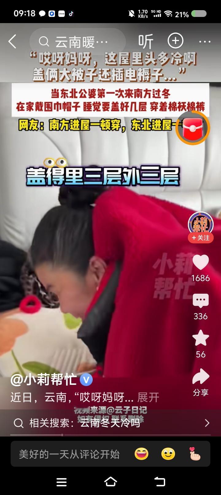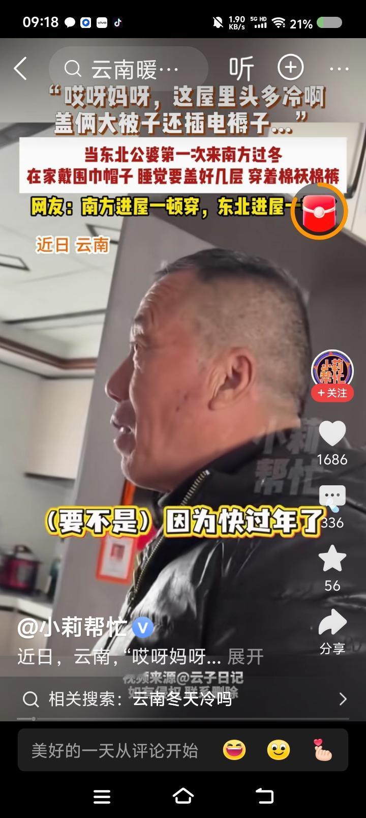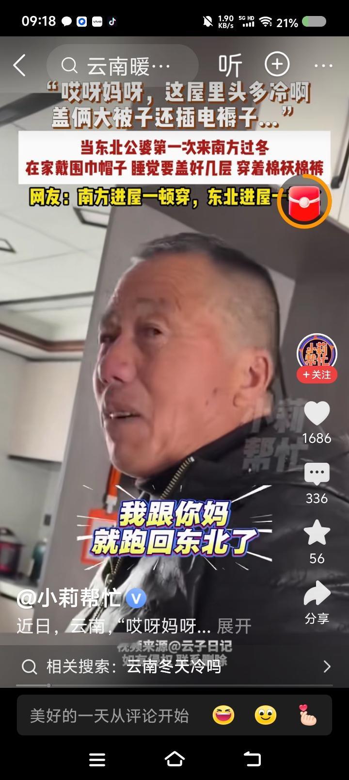 南方比北方冷?—— 据报道,一对东北夫妇第一次到南方过冬。冻得受不了。 点评: 南方哪里冬天不冷不潮而且没有高原反应? 快告诉我。我把它搬到北方来。南方的小伙伴,加油!