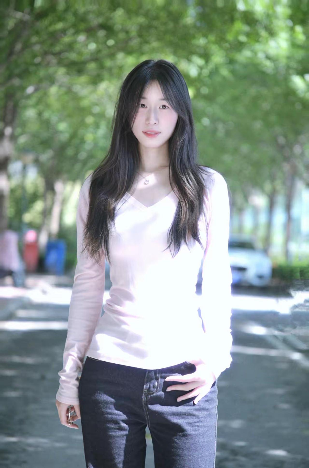 甜美少女风,白色短款上衣搭配牛仔裤,清新自然,元气满满!🌟✨