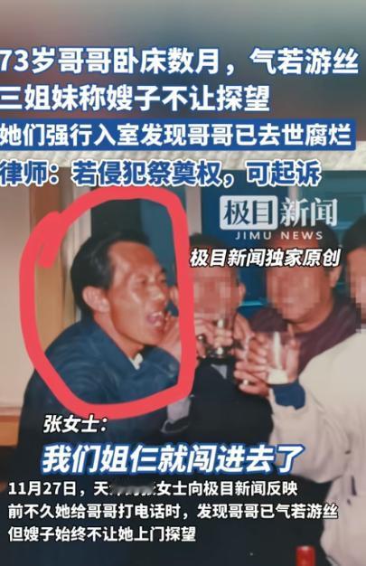 “电视剧都不敢这么演!”近日,天津,一女子给哥哥打电话时,感觉哥哥已经说话气若游丝,但是嫂子却始终不让她上门探望,于是姐妹3人只好强行入室,却发现哥哥已经去世多日,遗体都已经开始腐烂。网友:这是什么操作? 张大姐是一位60岁左右的退休妇女,她从小就和哥哥感情深厚,两人形影不离。 无论是逢年过节,还是平常日子,张大姐都习惯和哥哥视频通话,聊家常、谈生活,甚至偶尔开开玩笑,她总觉得,有哥哥在身边,心里踏实。 最近几周,张大姐发现哥哥不再接她的视频电话。她心里起了疑虑,却又不愿意轻易去打扰。 连续几天拨打,视频都是无人接听,她心中像压了一块石头。终于,她打电话给嫂子,希望了解哥哥的情况。 “嫂子,最近哥是不是身体不舒服啊?怎么不接视频了?”张大姐语气中带着焦虑。 “没事啦,他就是上了年纪,有时候糊涂了,别担心。”嫂子的回答听上去淡淡的,甚至有些敷衍。张大姐听了半信半疑,但碍于嫂子的说法,也只能暂时放下心来。 一天,张大姐如往常一样上街买菜,却意外从哥哥家的邻居口中得知惊人消息:“张姐,你不知道吧,您哥前段时间中风,已经瘫痪在床了。” 张大姐顿时愣住,手里的菜都差点掉在地上。她急忙掏出手机,打电话给哥哥。电话那头,微弱的气息、断断续续的呼吸声让她的心揪成一团。 她几乎听不清楚哥哥的声音,但从那气若游丝的口气中,她明白——哥哥的情况非常危险。 “哥,我明天就去看你!”张大姐哽咽着说,心中充满了担忧和不安。然而,嫂子却坚决不让她上门探望。 “你别来了,他现在挺安静的,您去反而打扰他休息。” 张大姐不断劝说,但嫂子总有各种理由推脱,声称家里忙、哥哥身体状况不宜打扰。张大姐心中越来越不安,一种不祥的预感涌上心头。 无奈之下,她叫来了大姐和五妹,两位姐妹也都急得团团转。姐妹三人决定,不管嫂子再如何阻拦,一定要去确认哥哥的情况。第二天一早,她们一同赶往哥哥家。 一进门,眼前的一幕令她们如坠冰窟——哥哥的遗体已经躺在床上多日,身体开始腐烂,空气中弥漫着令人作呕的气味。 张大姐顿时崩溃,泪水夺眶而出,失声痛哭:“哥……你怎么能这样……” 姐妹三人相互扶持着,呆站在原地,难以置信眼前的事实。 邻居后来透露,哥哥中风后已经无法行动,家中无人及时照顾,甚至连最基本的医疗救助都未得到。嫂子在这期间一直阻止外人探望,甚至在邻居面前还说:“没事的,他就老了,别麻烦他。” 这件事在网上曝光后,引发了轩然大波。网友纷纷表达震惊和愤怒:“这是人干的事吗?亲人去世多日还不让探望?” “嫂子到底是怎么想的?这也太冷漠了。”还有网友心疼张大姐:“姐妹三人心痛至极,却还要承受被阻拦的折磨,实在太让人心疼了。” 不少网友开始讨论老年人家庭照护问题:“家有老人,一旦中风或生病,如果家人不管,后果太可怕。”“强烈建议家庭监护制度完善,不能让老年人孤立无援。”