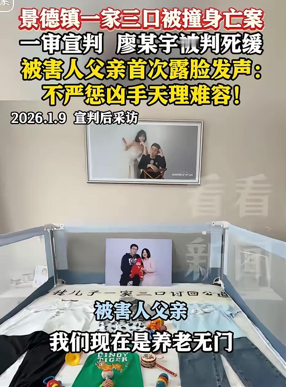 景德镇灭门案,廖某宇他爹现在估计肠子都悔青了!他后悔的不是儿子撞死三个人,而是自己在法庭上那一冲,亲手把儿子的活路给堵死了。 谁能想到,一场本该争取谅解的庭审,会被当爹的冲动彻底推向绝境?2026年1月9日,景德镇中级法院的法槌落下,20岁的廖某宇因以危险方法危害公共安全罪被判死缓,而这已经是法律框架内基于其自首、避让情节给出的宽宥,可他父亲的所作所为,直接让这份宽宥变成了“无法挽回”的结局。 廖某宇的罪行有多恶劣?2024年10月2日晚高峰,他因为和同车女友拌嘴泄愤,在限速40km/h的城市主干道,把车速飙到128.96km/h,连续加速14秒不顾劝阻。据警方通报,过马路的一家三口没来得及反应,就被狠狠撞上——不满1岁的婴儿当场死亡,年轻父母经抢救无效也先后离世,一个家庭瞬间破碎。案发后他虽报警自首、有过紧急制动动作,但这些仅够让他免于死刑立即执行,而非脱罪。 被害人家属的痛苦,是常人难以想象的。整整四百多个日夜,老两口靠着药物对抗抑郁和应激障碍,天一黑就恐惧失眠,他们唯一的诉求就是凶手偿命,哪怕对方提出高额赔偿也断然拒绝。可廖某宇一家的态度,从始至终都没有半分歉意。 更让人心寒的是廖父的言行。据庭审现场旁听者表述,庭审前,他不仅没安抚受害者家属,反而在通话里恶语相向:“撞死你家仨口是天灾,你们搞我儿子是人祸”,甚至放话要找“仙家”报复。等到一审死缓判决宣布,法庭程序还没结束,他突然从旁听席冲出来,直奔被害方代理律师,意图动手打人,最后被法警强行按住。 这一冲,冲没了廖某宇最后的转机。法律讲究法理也兼顾情理,廖某宇能拿到死缓,本就依赖自首和避让的法定情节,而家属的谅解态度、是否积极弥补,往往是后续量刑考量的重要因素。可廖父的冲动,不仅可能构成扰乱法庭秩序罪,面临三年以下有期徒刑或罚金,更彻底撕碎了双方和解的可能,也让法院看到了其家庭对生命的漠视。 要知道,类似的案例早有先例。据公开判例,上海曾有当事人在庭审中冲动打人,最终因扰乱法庭秩序罪被判有期徒刑,亲手葬送了自己的权益。廖父但凡有点理智都该明白,法庭是讲法的地方,不是发泄情绪的场所,他的每一个过激行为,最终都得由他儿子买单。 廖某宇至今都没向受害者道歉,面对判决表情平淡,仿佛三条人命与他无关。而廖父的后悔,也根本不是为了逝去的家庭,只是心疼儿子的判决结果。这种自私与冷漠,比犯罪本身更让人不齿。 法律给了廖某宇一个忏悔改过的机会,可他和家人却用傲慢和冲动拒绝了。生命不分贵贱,每个逝去的生命都该被尊重,每个犯错的人都该为自己的行为负责。廖父的那一冲,不仅断送了儿子的退路,更暴露了家庭教育的缺失——连最基本的敬畏生命、尊重法律都不懂,才养出了肆意妄为的儿子。 司法公正不会因为一时冲动而倾斜,也不会因为冷漠傲慢而妥协。廖某宇的结局,是他自己的恶行造成的,而廖父的冲动,只是让这份结局少了任何回旋的可能。 各位读者你们怎么看?欢迎在评论区讨论。 景德镇灭门案 法律公正 冲动的代价 生命不可漠视