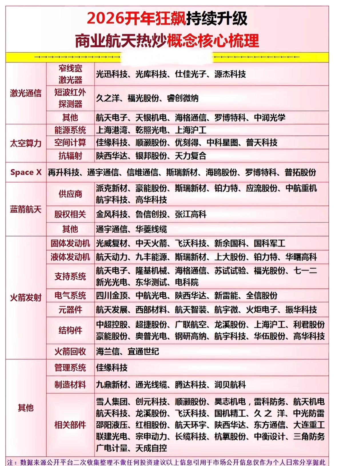 2026年商业航天热炒概念梳理,一图看懂! 中国商业航天产业链热度攀升,涵盖火箭发射、发动机、材料、通信及配套技术,多家企业布局太空经济新