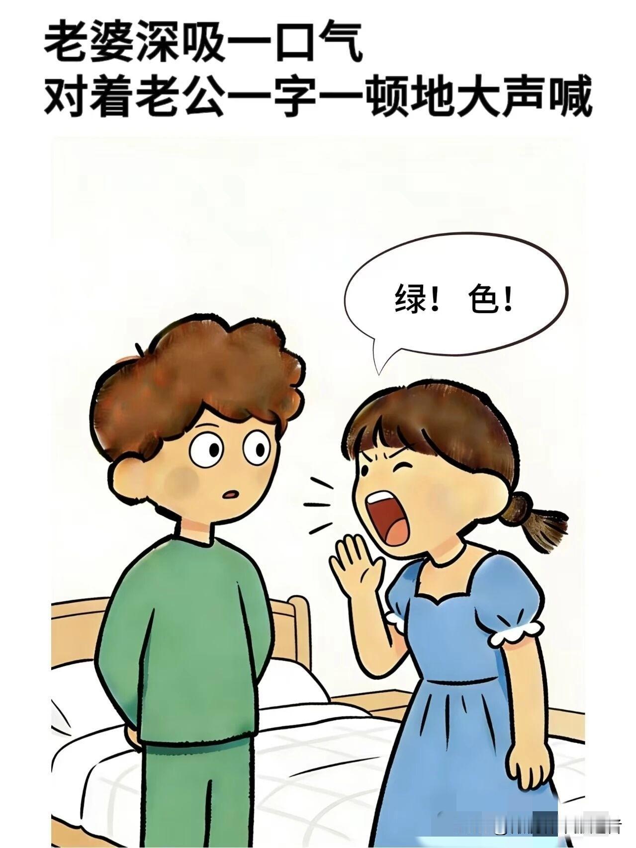 趣味漫画:老婆:我不是故意的,老公:这么简单的事你都搞错,老婆:以后你再这么说我,我就给你点颜色看看,老公:什么颜色,老婆:绿色趣味小漫画