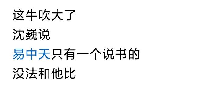 流浪大师沈巍,这是有点飘啊, 他说:易中天就是一个说书的, 他还说:李敖在文学上,没什么成就, 拜托,你老人家有时间,洗个澡吧,每次见到你,都有一种脏兮兮的感觉,澡都不洗,却敢妄议天下,臧否读书人,这不就是典型的“乌鸦飞到猪腚上,只看见别人黑”吗? 此人原本就是个捡垃圾的,后来被资本发现,天天领着一群网红和帮闲,人五人六的点评这点评那, 我们的平台也把关不严,对于违反公序良俗的东西,太过宽容,遂使竖子成名, 强烈呼吁平台加强管理,像这样纯粹的炒作,又没有意义的视频,坚决封杀。