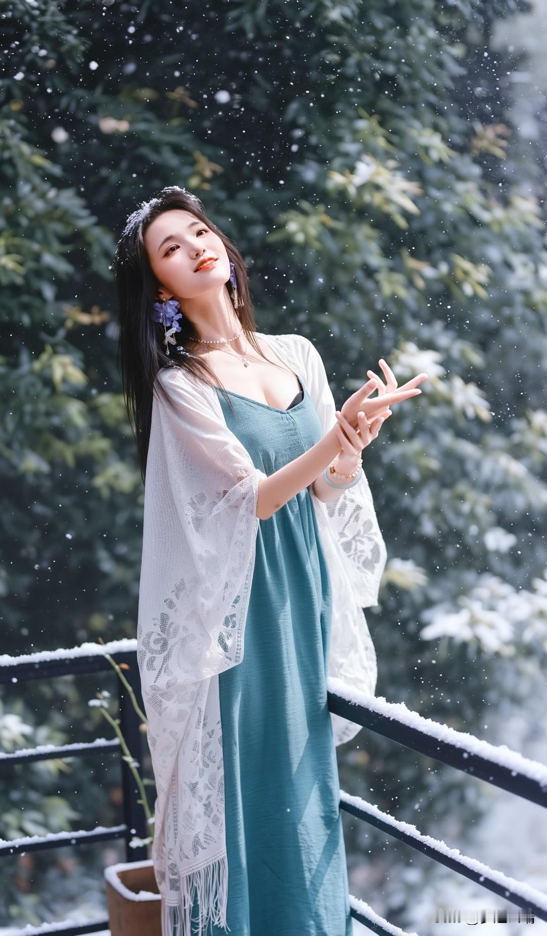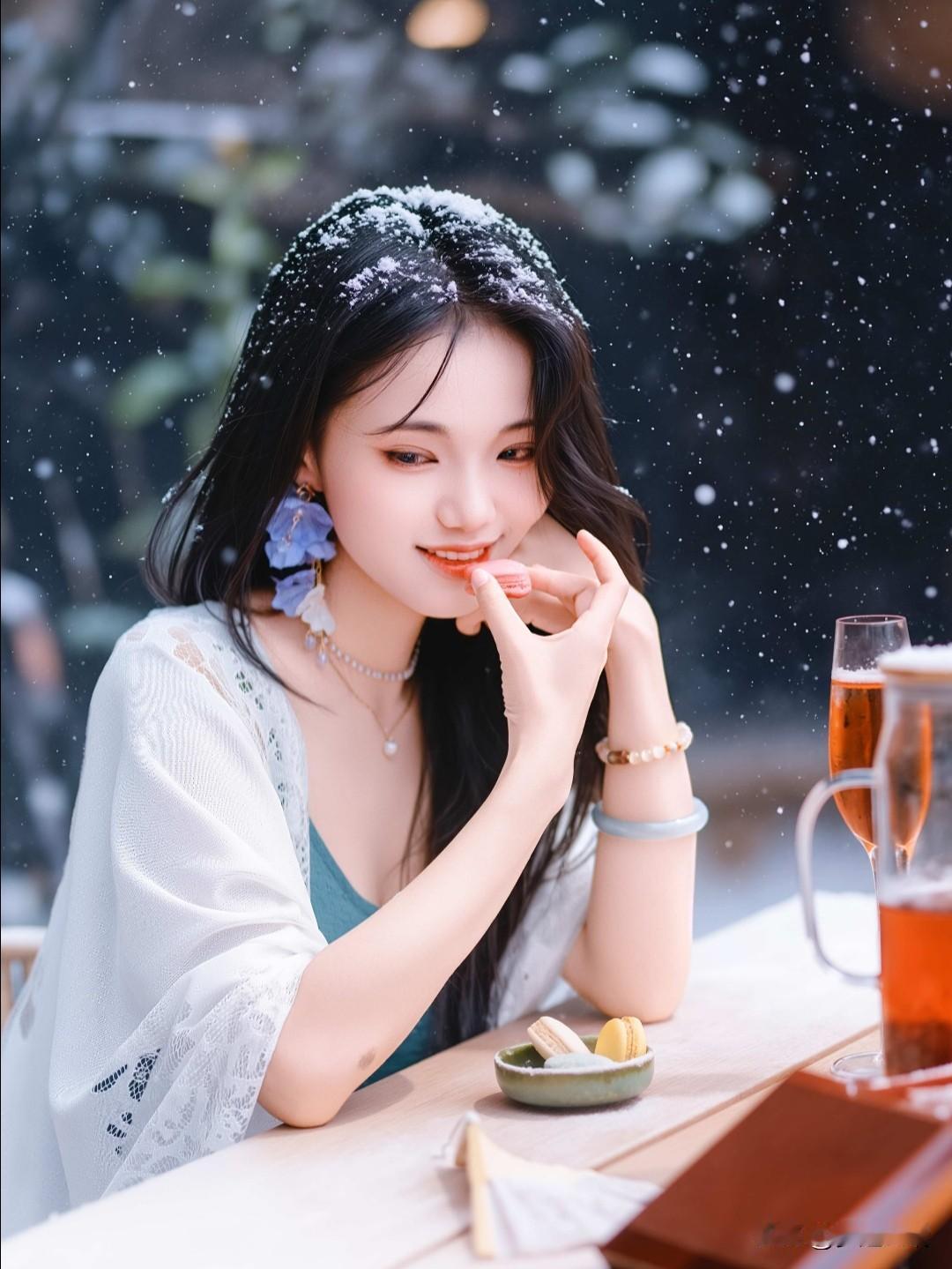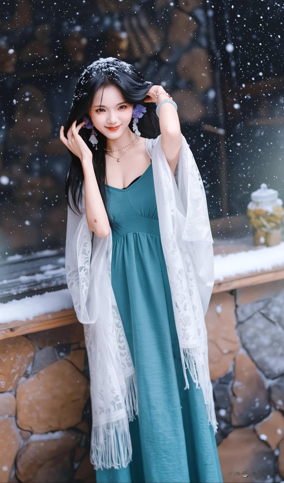 冬日雪景中的甜美少女,笑容灿烂,温暖如春!🌨️😊
