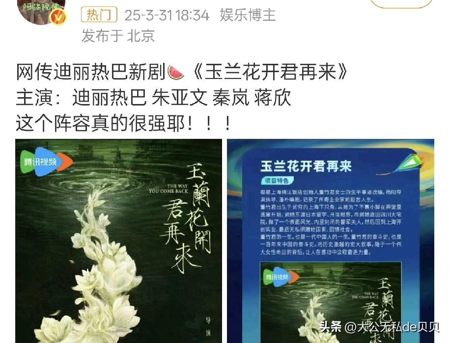 现在这个时间刷到这条娱乐八卦,觉得有点恍惚和搞笑罒ω罒 其实热巴应该是挺羡慕杨紫的吧。 拿到的都是顶级好本子,合作的男演员也越来越好,越来越大咖。 虽说自己也不缺本子,但是缺好本子啊! 和杨紫同龄,人家都转型和胡歌演正剧了,自己却只能和陈飞宇演古偶。 话说,要是 玉兰花开真的是迪丽热巴和朱亚文演,会不会比杨紫欧豪效果好呢? 他俩真有12岁左右的年龄差。 欧豪的话,和杨紫同龄,能演出这种“老夫少妻”感吗?