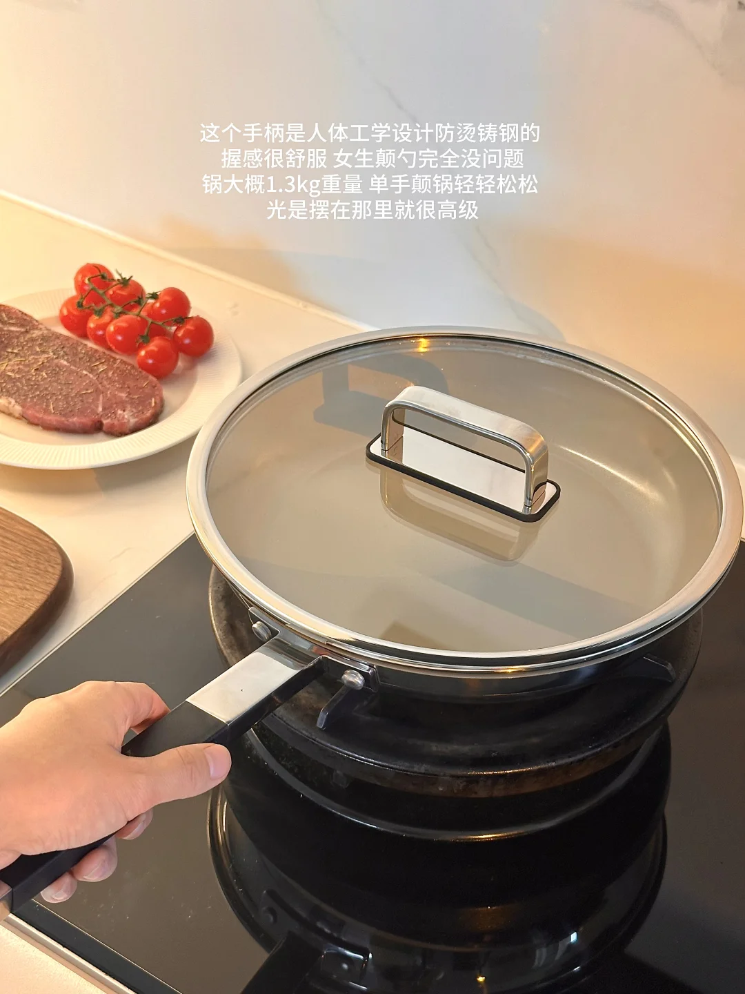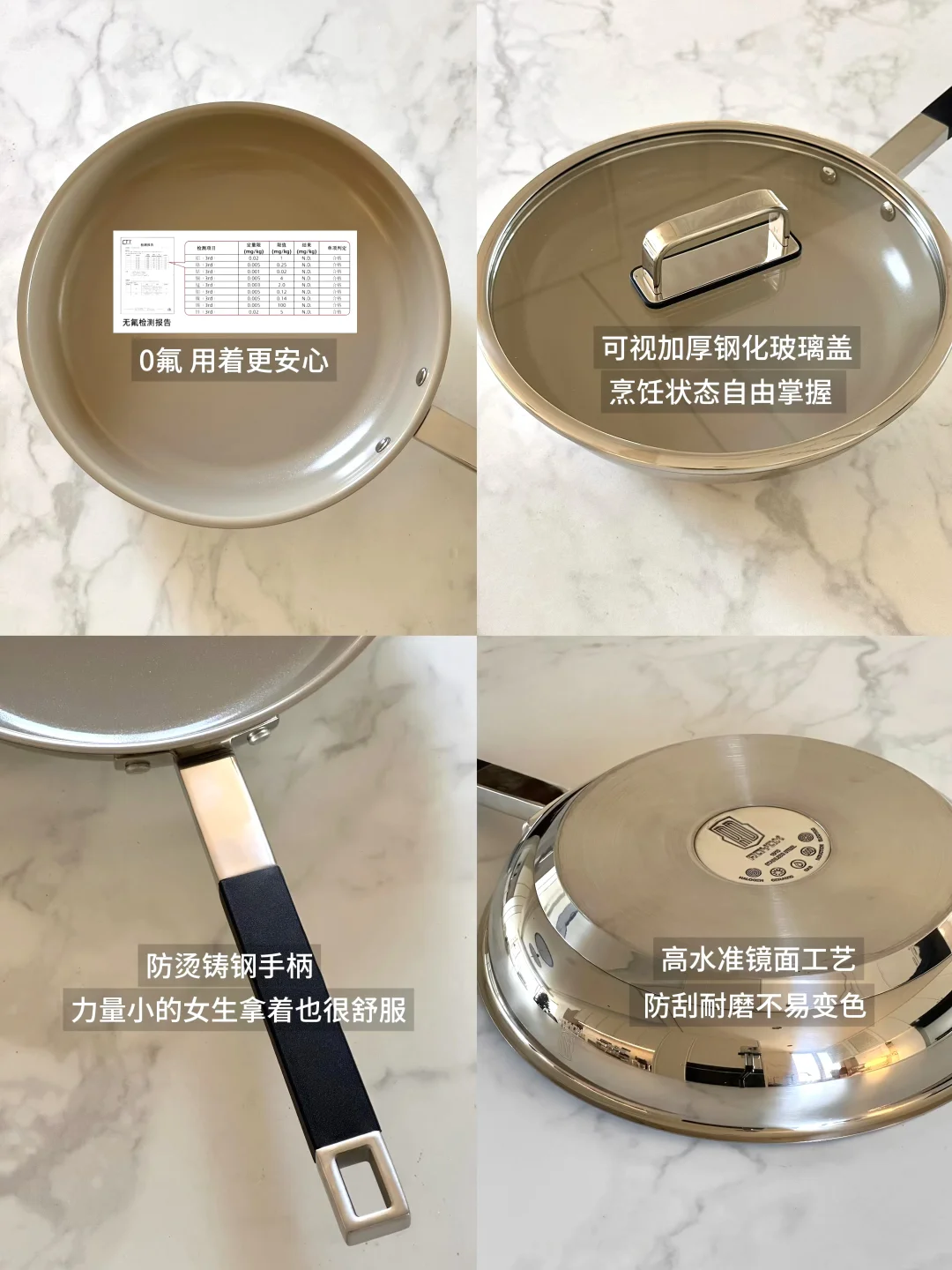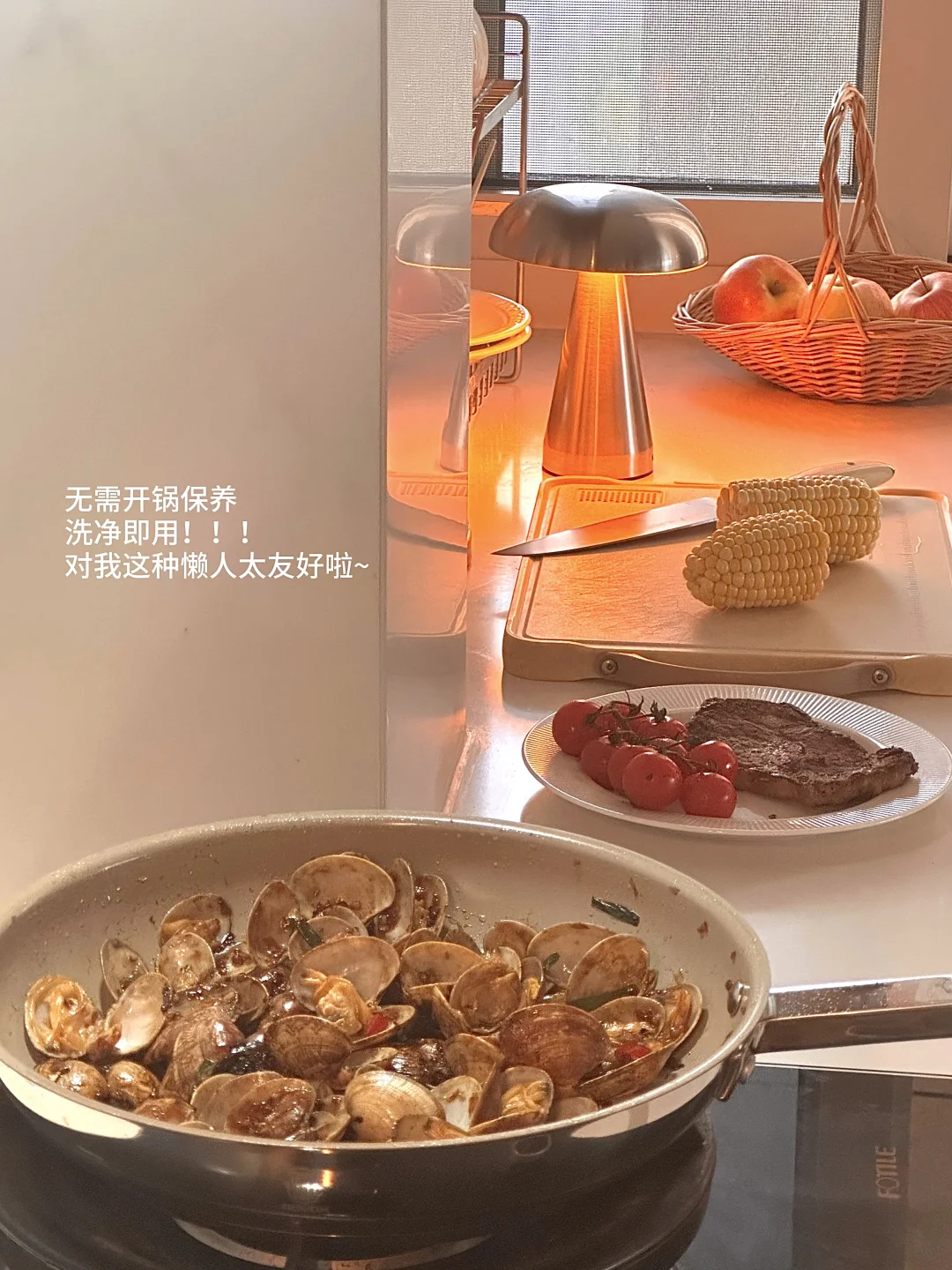 . 作为厨房小白真的怕极了铁锅 不是粘锅粘到怀疑人生 就是炒个菜直接焦成炭😭 . 偶然手机上刷到莱德斯有钛陶瓷聚油锅 抱着试一试的心态下单 到手用了段时间速速来分享下: . 很喜欢它的防凸底设计 聚油效果嘎嘎好,油全锁在中间 6层锅身受热超均匀 煎牛排🥩的时候滋滋冒香 多余水分快速蒸发 轻松煎出焦褐层来,外焦里嫩 . 它是含钛(进口)陶瓷内壁防刮耐磨 完全不粘!牛排可以轻松翻面 炒花甲🧑‍🎨这类硬壳食物都不怕刮花 . 还有很戳我的是不用开锅! 洗干净直接用 用完随便冲两下💦就干净 好适合我这种懒人 . 现在我喊朋友来家里聚餐 再也不是厨房杀手啦 真的!没有菜渣只有没选对的锅!